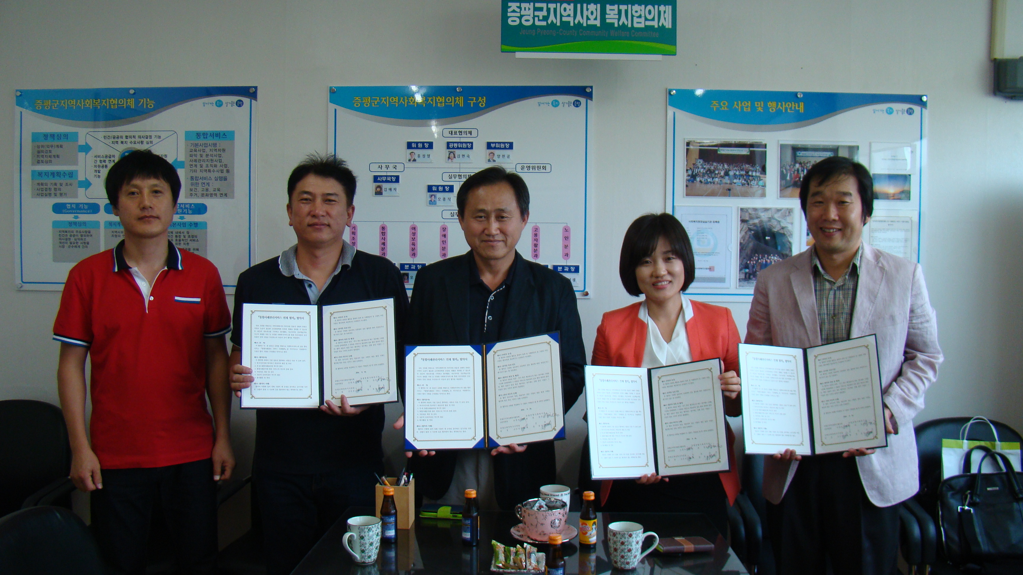 증평군지역사회복지협의체(공동위원장 홍성열, 김현숙)는 17일 증평군지역사회복지협의체 사무실에서 증평군 외식업체 광고책자(회장 정율채) 회원들과 ‘통합사례관리 서비스 연계협력’을 위한 사회공헌 협약식을 가졌다. [증평보도자료실 참조]