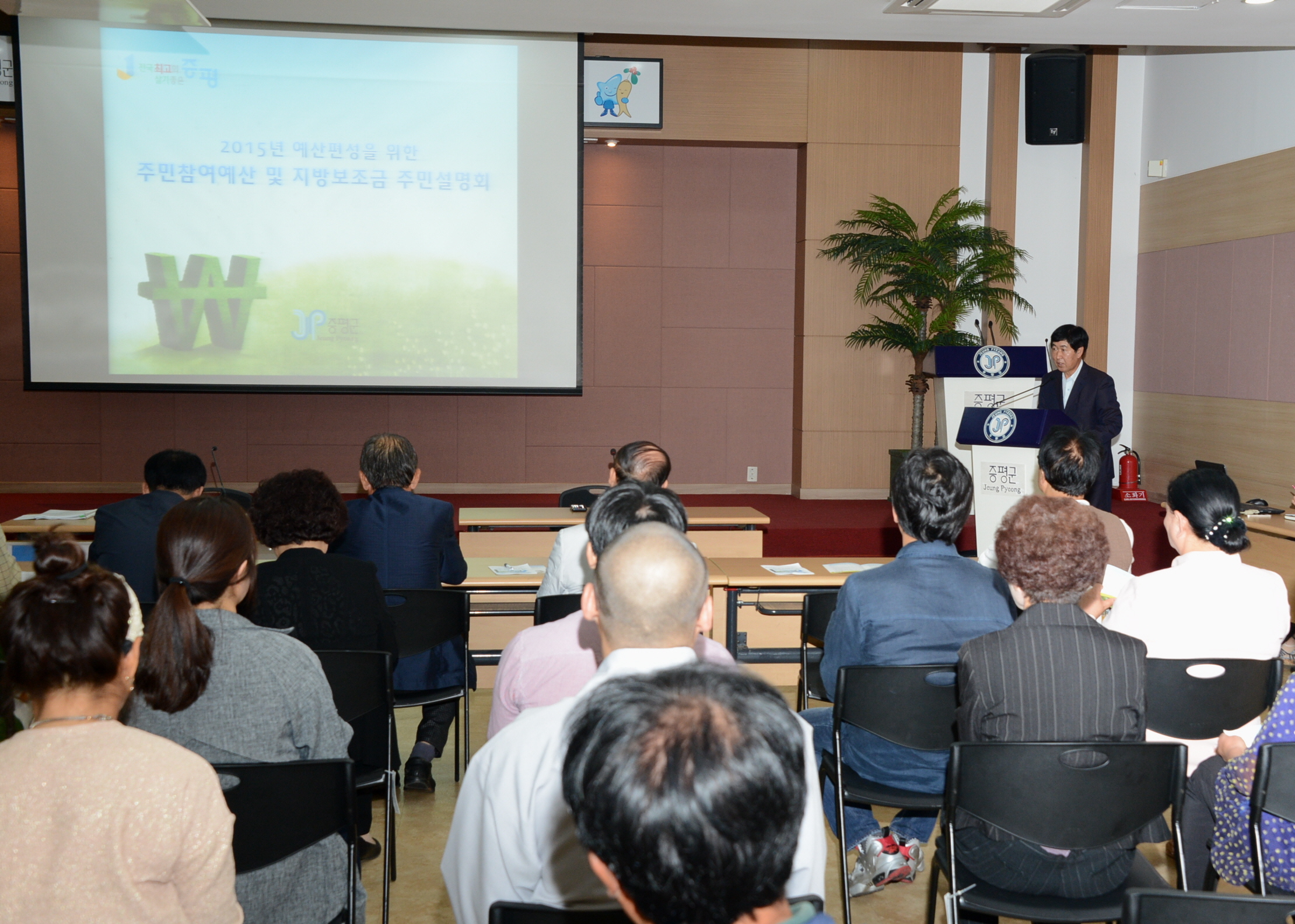증평군은 29일 오후3시 군청 대회의실에서 주민 100여명 참석한 가운데 2015년도 예산 편성을 위한 주민참여예산과 달라지는 지방보조금제도에 대한 주민 설명회를 개최했다. [보도자료실 참조]