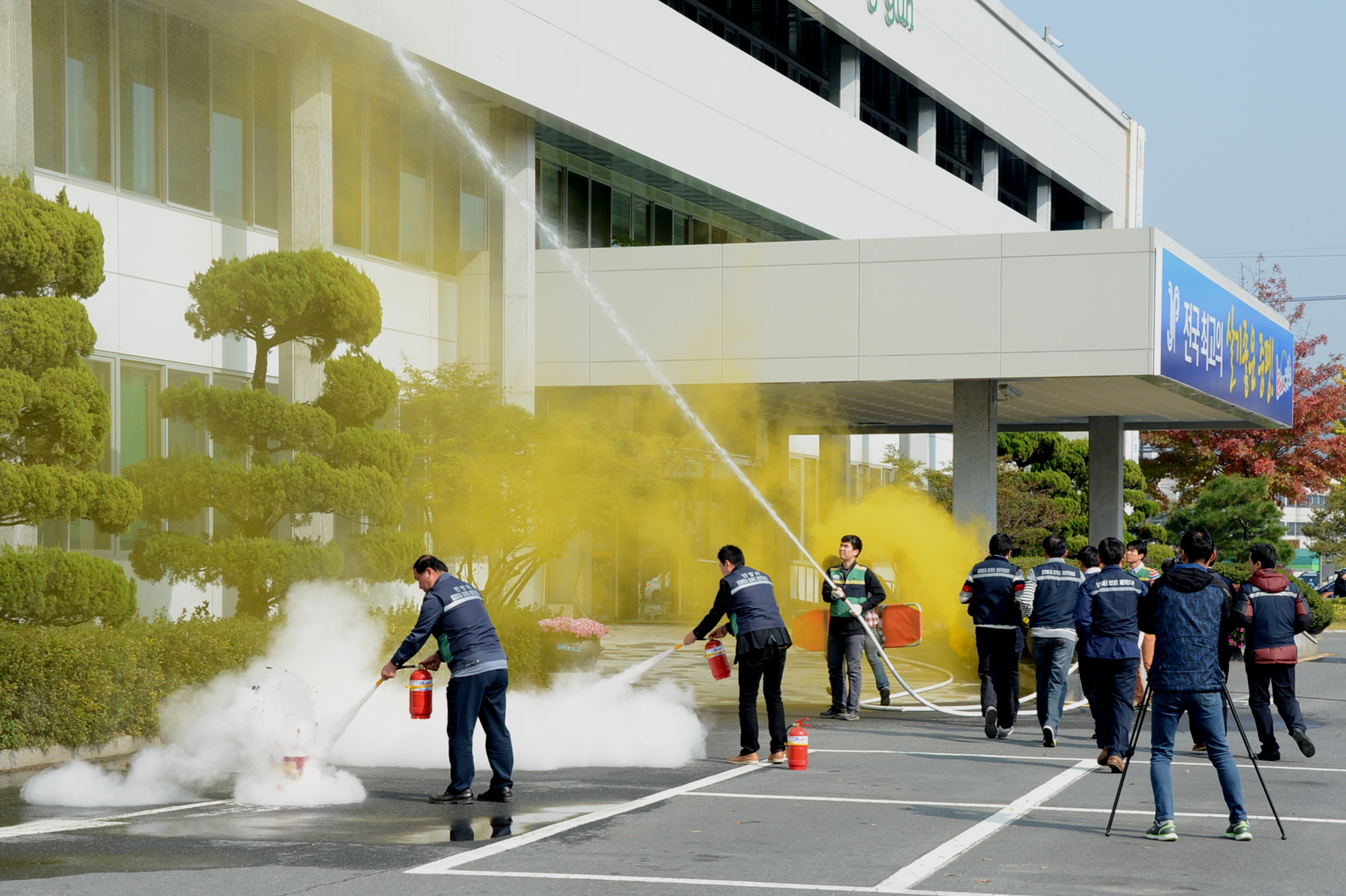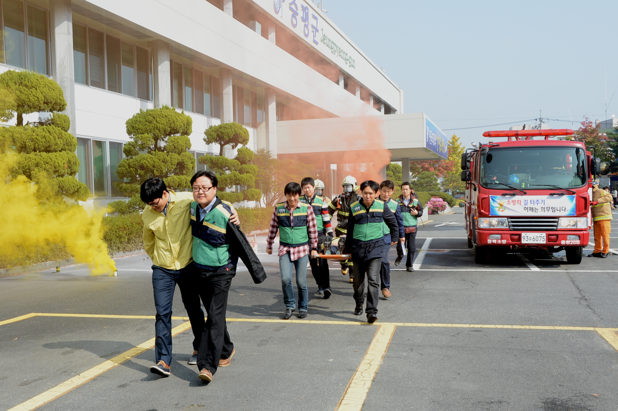 충북 증평군은 24일 오전 11시 동절기 화재를 대비하여 증평군청 자위소방대와 증평소방서 합동으로 소방훈련을 가졌다. [보도자료실 참조]
