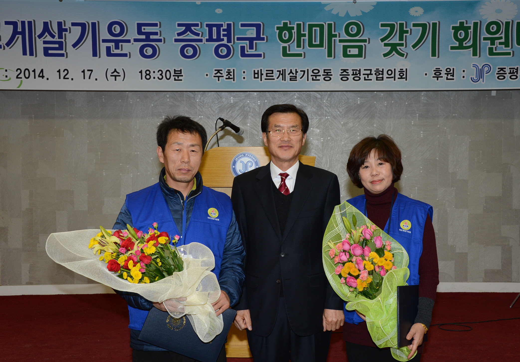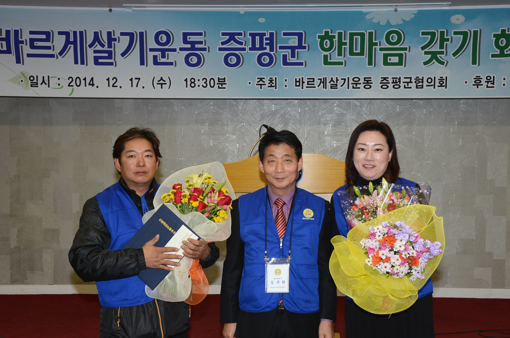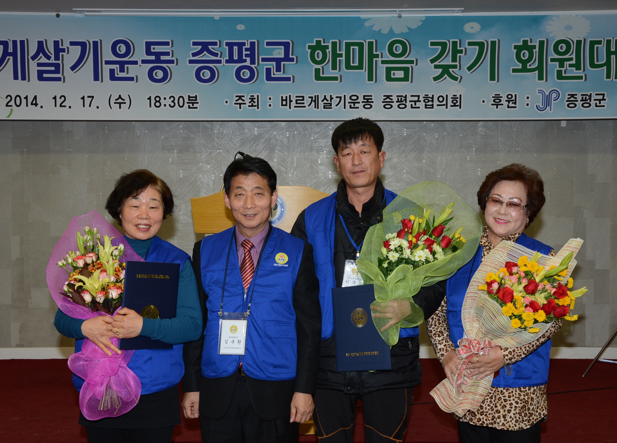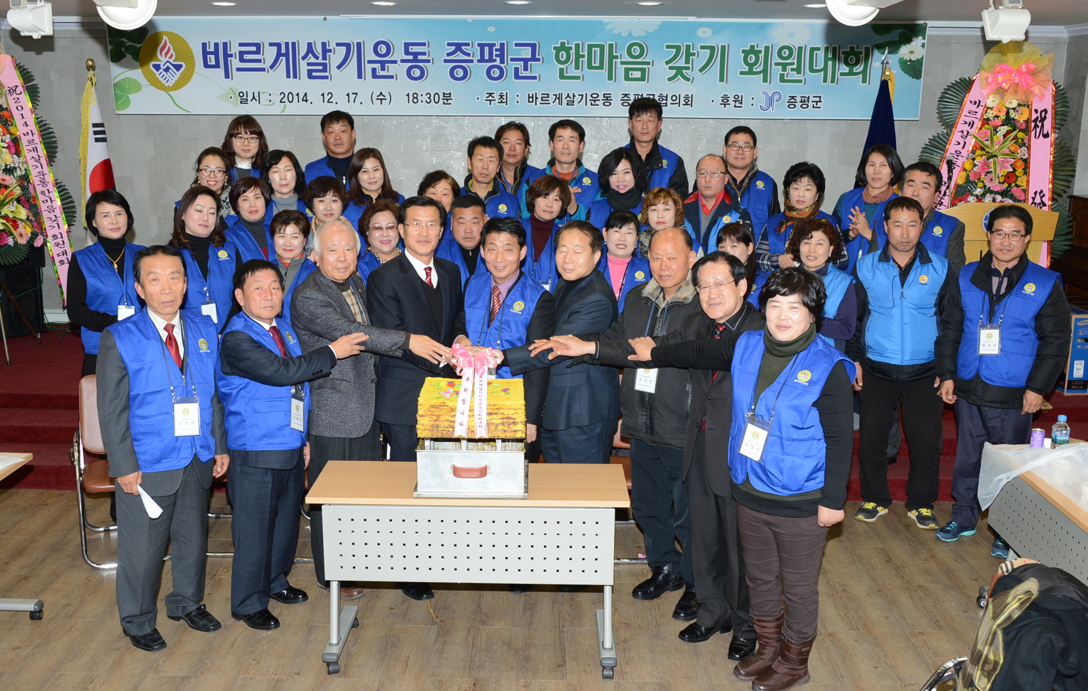 바르게살기운동증평군협의회(회장 김규환)는 지난 17일 오후 6시 증평군여성회관에서 회원 등 100여명이 참석한 가운데 ‘2014 바르게살기운동 한마음갖기 회원대회’를 개최했다. [보도자료실 참조]
