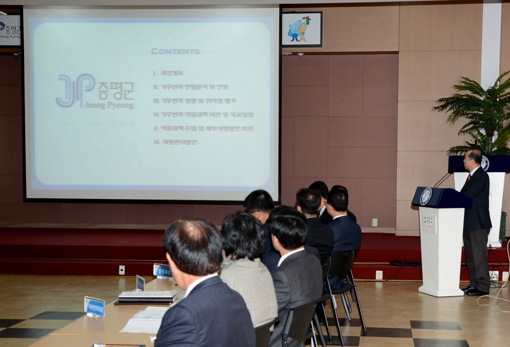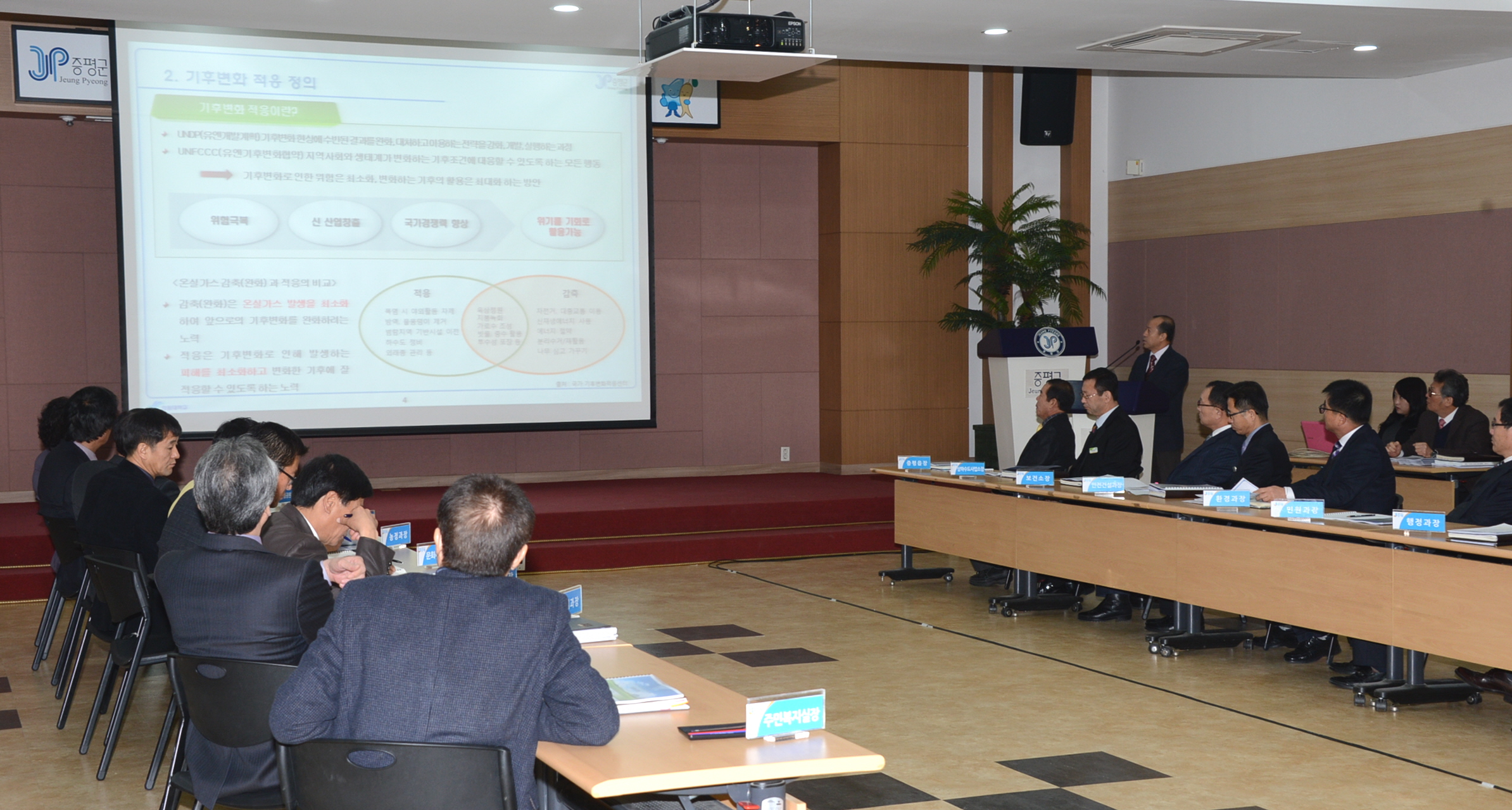 증평군은 22일 오전 9시 군청 대회의실에서 ‘증평군 기후변화 적응대책 세부시행계획 수립용역 최종보고회’를 관계 공무원 30여명의 참석한 가운데 개최했다.[보도자료실 참조]