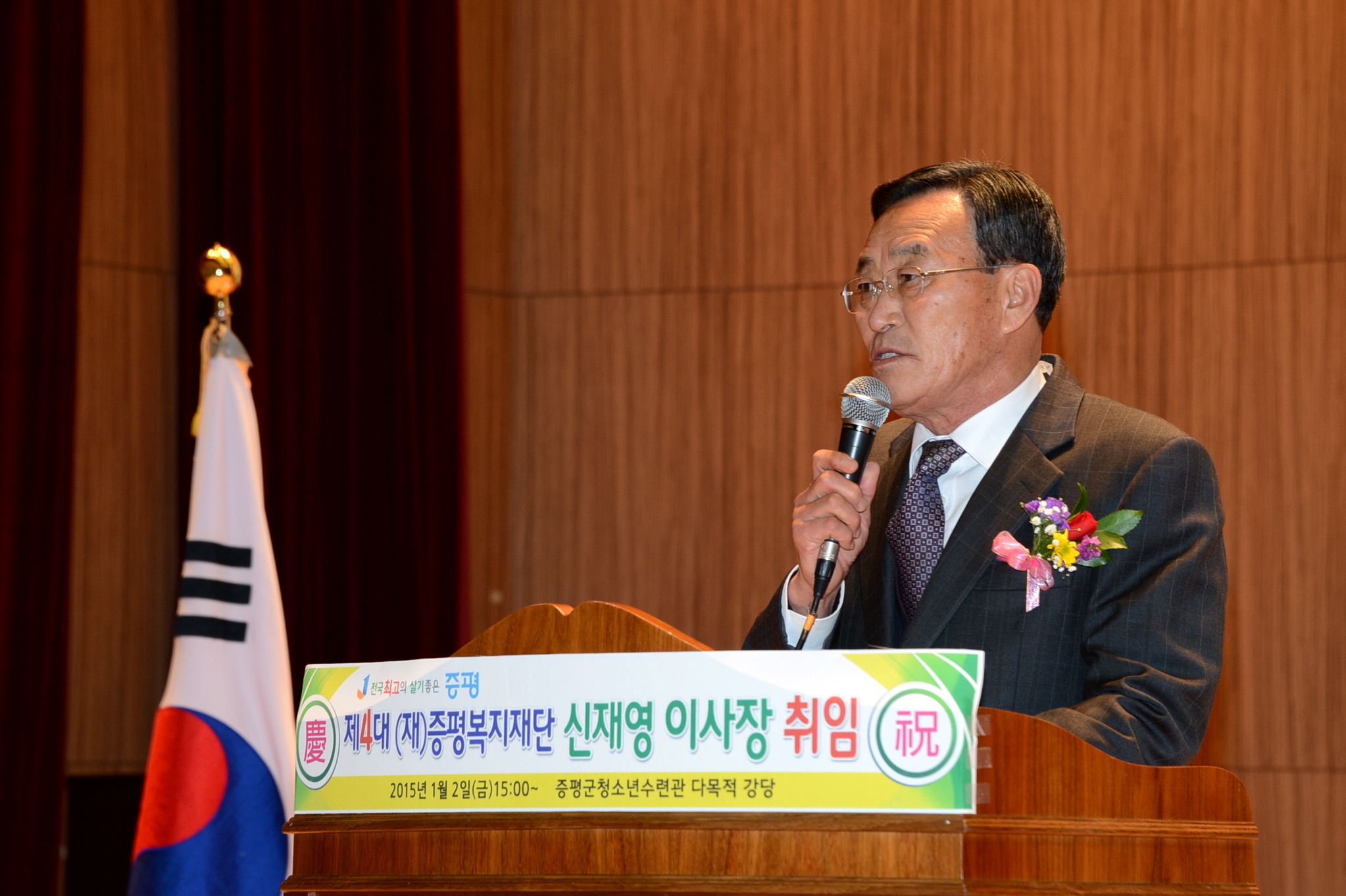 2일 오후 3시 증평군청소년수련관 다목적 강당에서 신재영(66)씨가 제4대 증평복지재단 이사장에 취임했다. [보도자료실 참조]