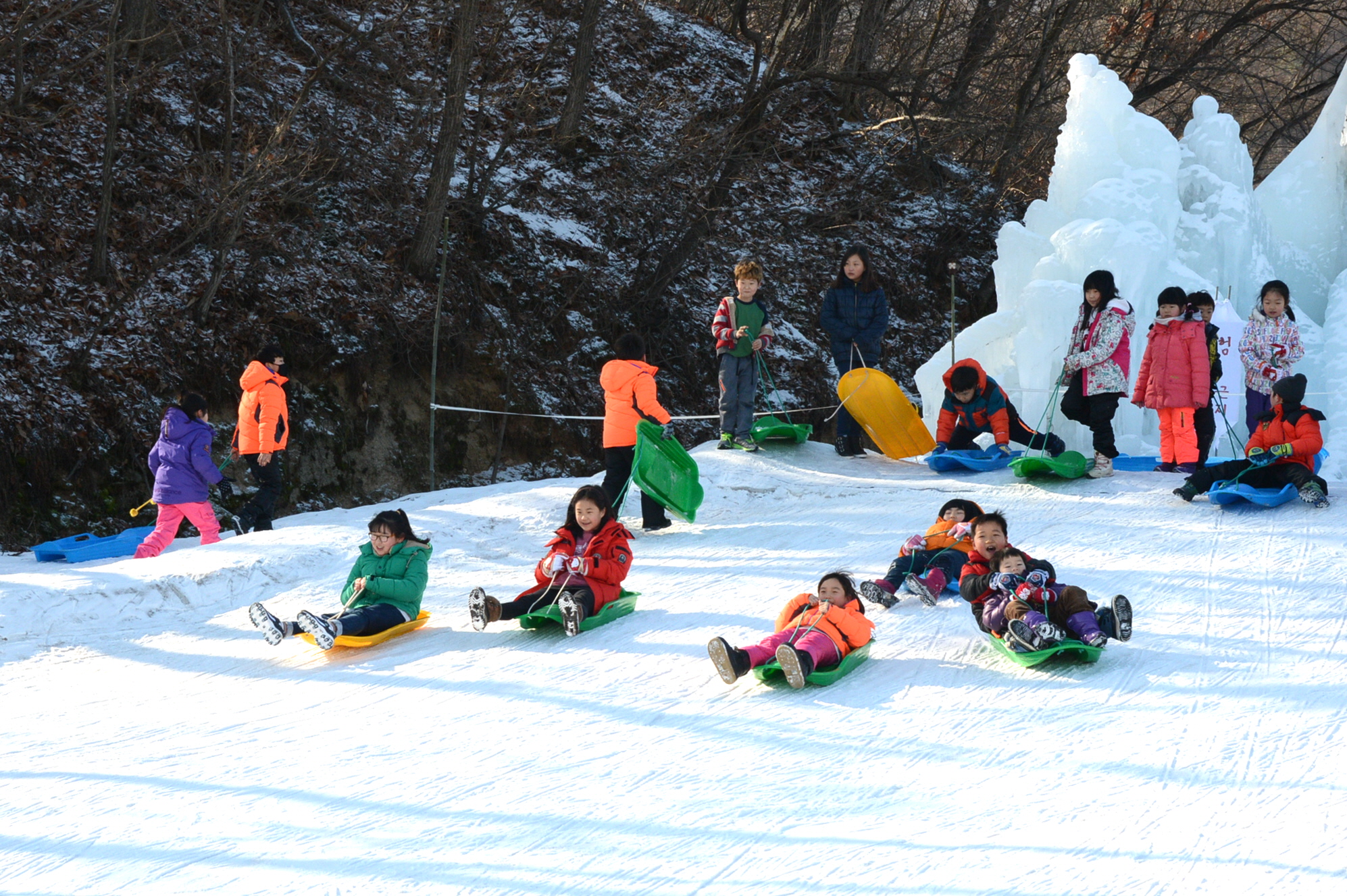증평군 증평읍 남하리 둔덕마을에 조성된 민속체험박물관 얼음썰매장이 인기를 끌고 있다. [보도자료실 참조]