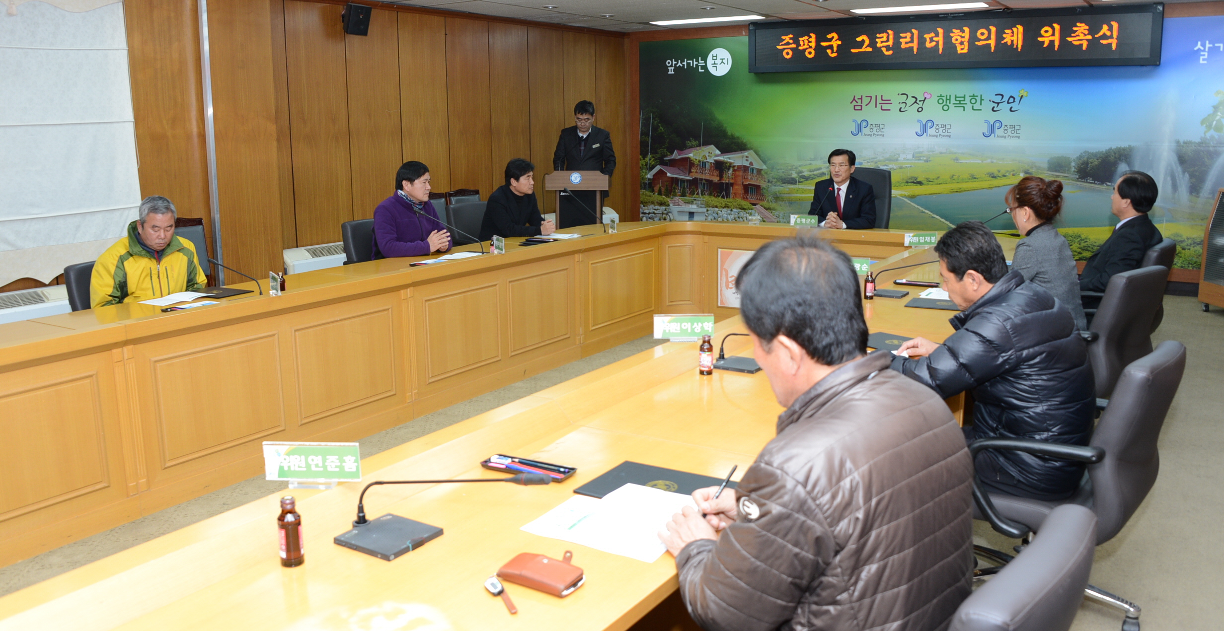 증평군은 13일 군청 소회의실에서 그린리더협의체 9명에게 위촉장을 수여했다. [보도자료실 참조]