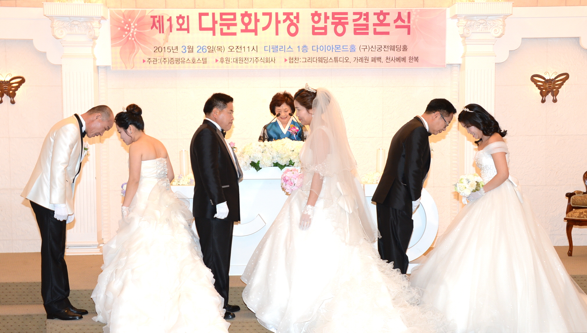 증평군에서는 26일 증평 디팰리스 웨딩홀에서 경제적인 어려움으로 결혼식을 올리지 못한 3쌍의 결혼 이주여성 부부의 합동결혼식이 개최됐다. [보도자료실 참조]