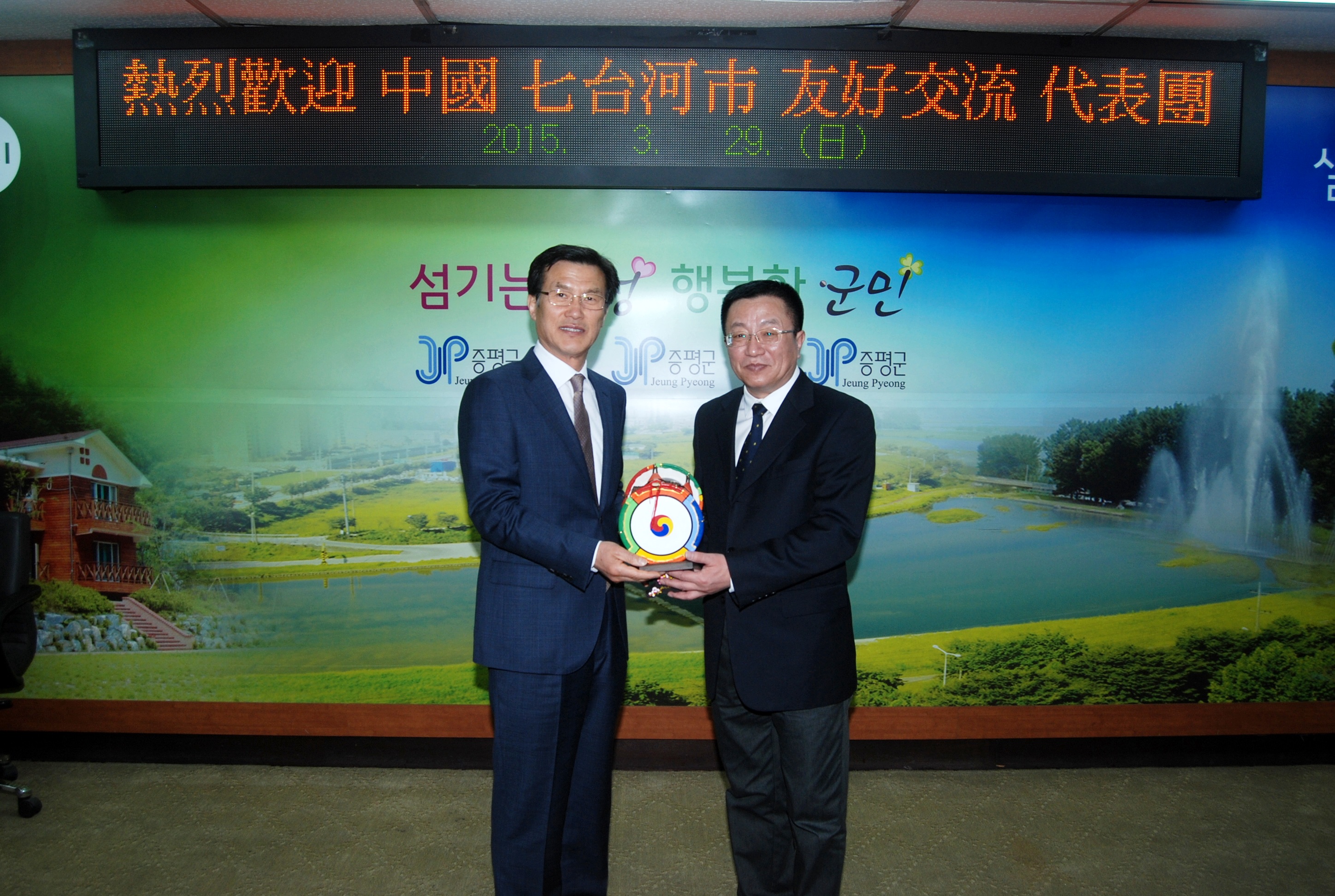 우리군과 우호교류 도시인 중국 흑룡강성 칠대하시에서 장옥평 부시장을 단장으로 하는 방문단이 29일 증평군을 방문했다. [증평보도자료실 참조]