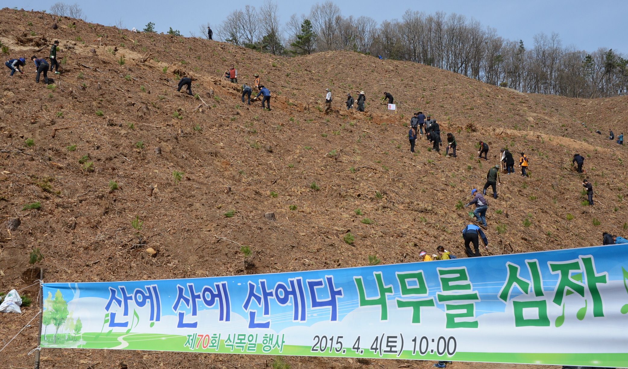 증평군은 4일 오전 10시 도안면 화성리 산25번지 일원에서 홍성열 군수를 비롯해 군 산하 직원300여명이 참석한 가운데 ‘제70회 식목일 나무심기 행사’를 개최했다. [보도자료실 참조]