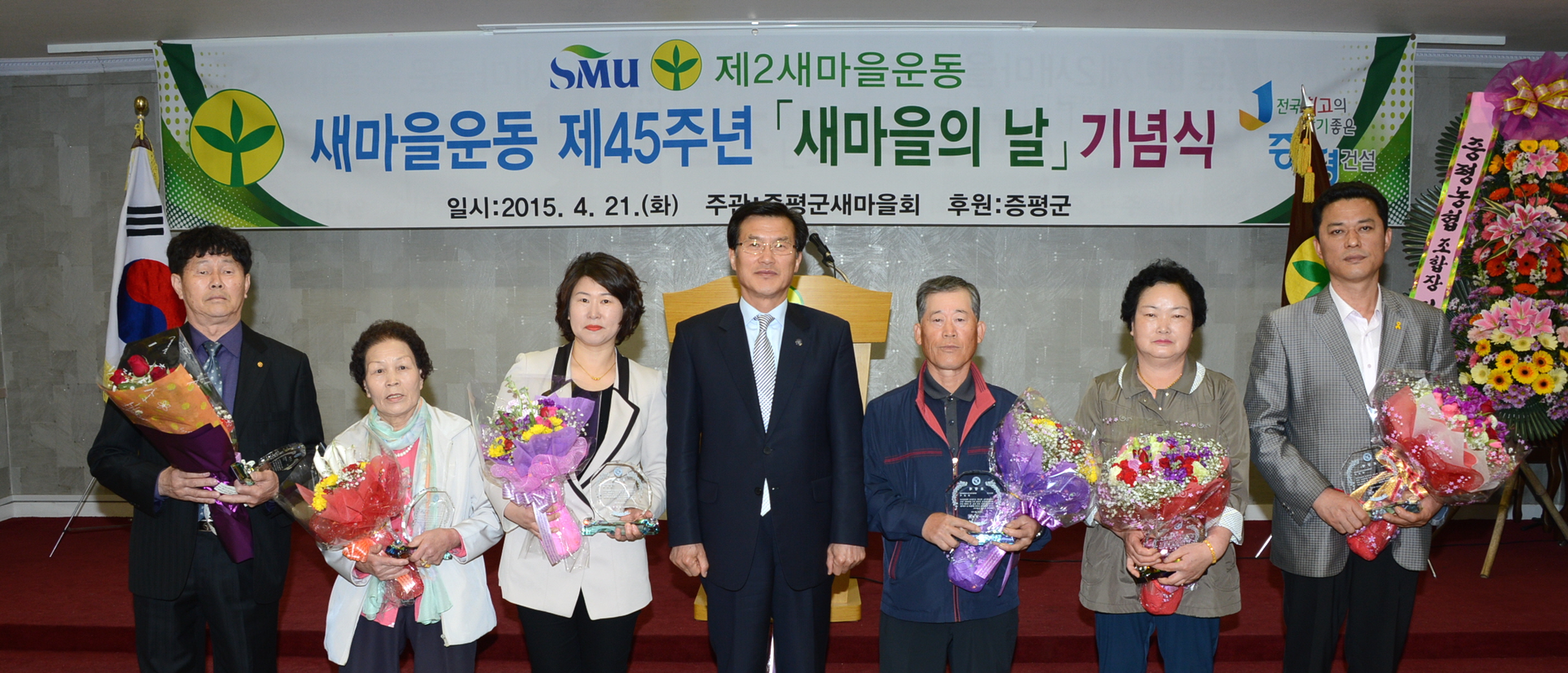 증평군 새마을회(회장 권영만)는 21일 오전 11시 30분 증평 여성회관에서 ‘새마을운동 제45주년 새마을의 날 기념행사’를 개최했다. [보도자료실 참조]