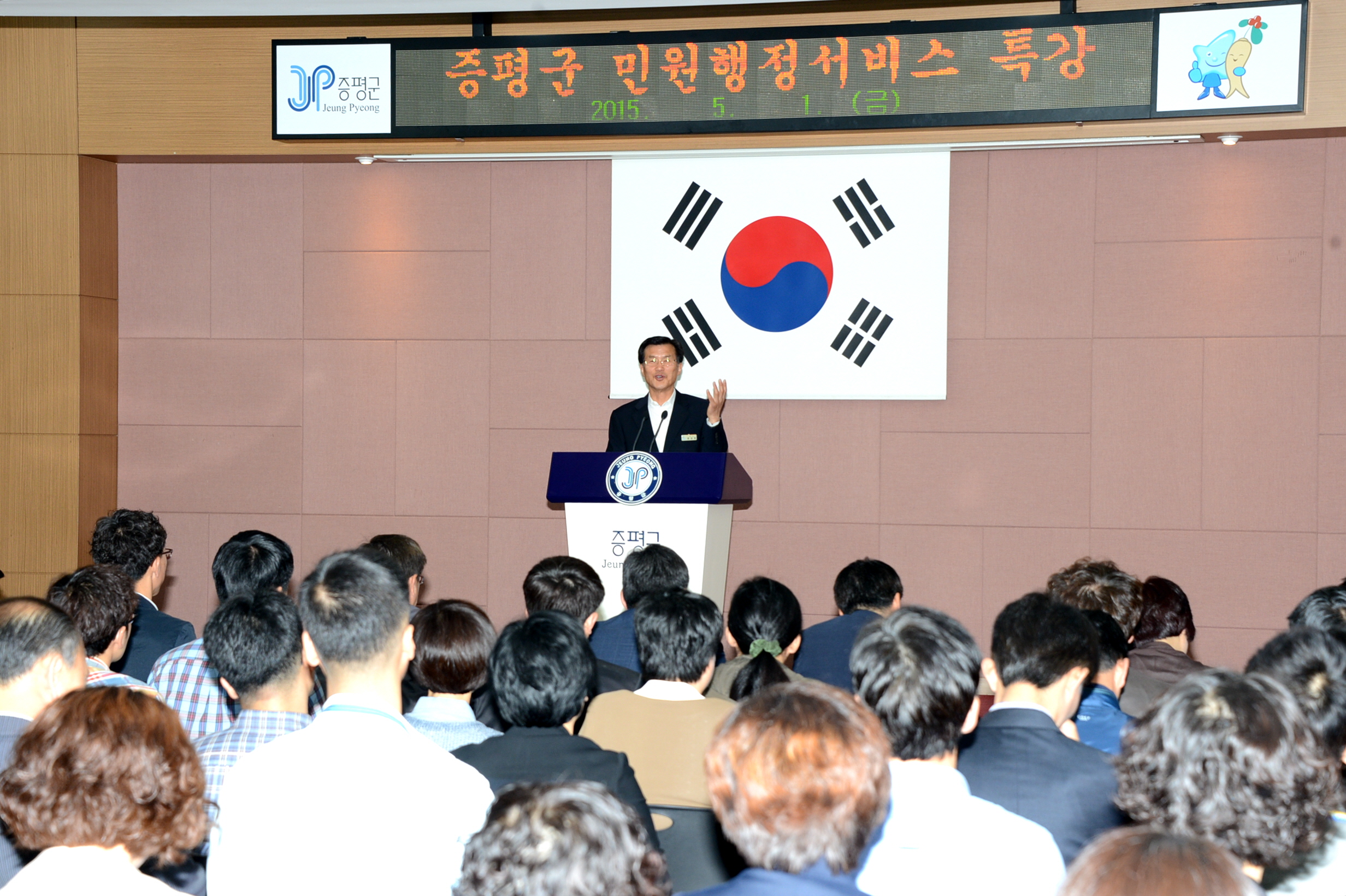 홍성열 증평군수는 1일 군청회의실에서 전 직원을 대상으로 군민 우선의 섬김 행정을 위한‘민원행정서비스’특강을 실시했다. [보도자료실 참조]