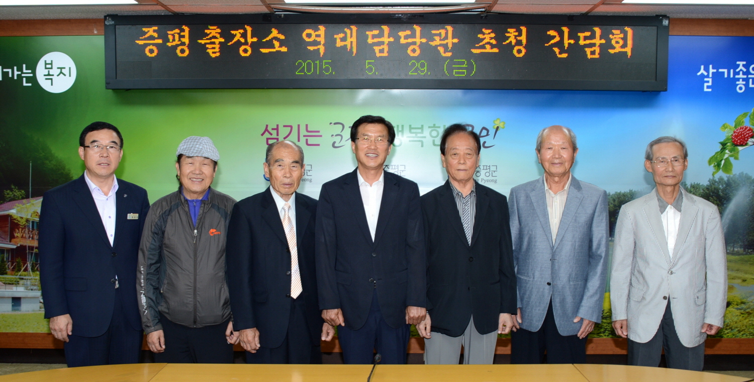 증평군은 29일 오전 11시 군청 소회실에서 홍성열 증평군수를 비롯해 장정원 전 행정담당관, 연규복 전 개발담당관 등 증평출장소 시절 역대 행정, 개발 담당관 5명을 초청해 지역발전 청취를 위한 간담회를 개최했다.[보도자료실 참조]
