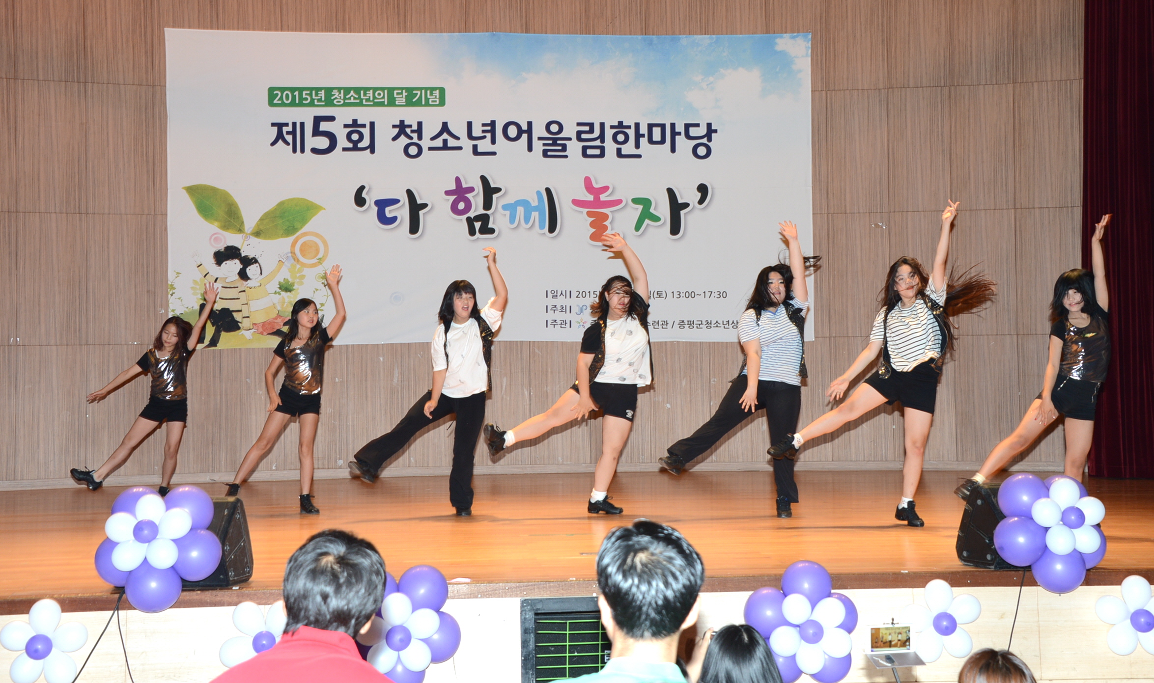 증평군청소년수련관·청소년상담복지센터(수련관장겸 센터장김병노)는 30일 오후 1시 30분 청소년과 가족 500여명이 참석한 가운데 청소년들의 끼와 열정을 발산할 수 있는 제5회 청소년어울림한마당을 증평군청소년수련관 다목적강당에서 열렸다.[보도자료실 참조]