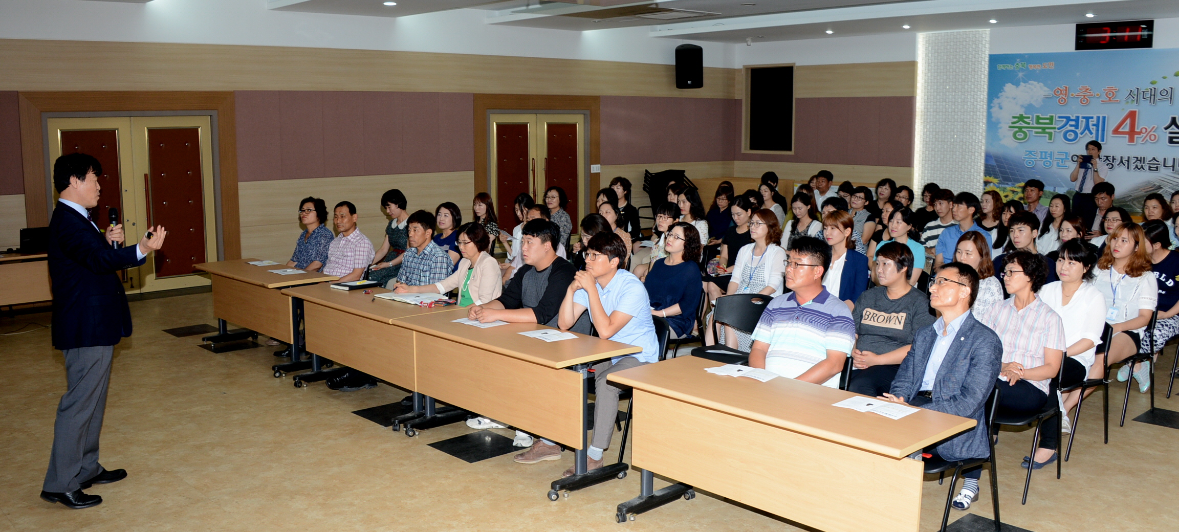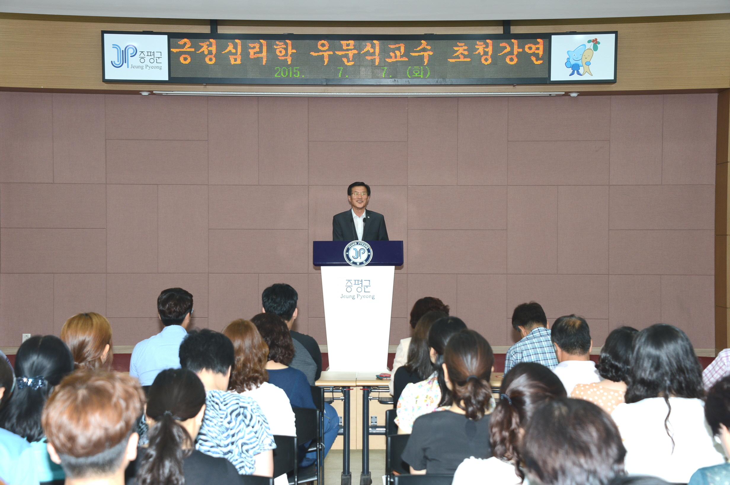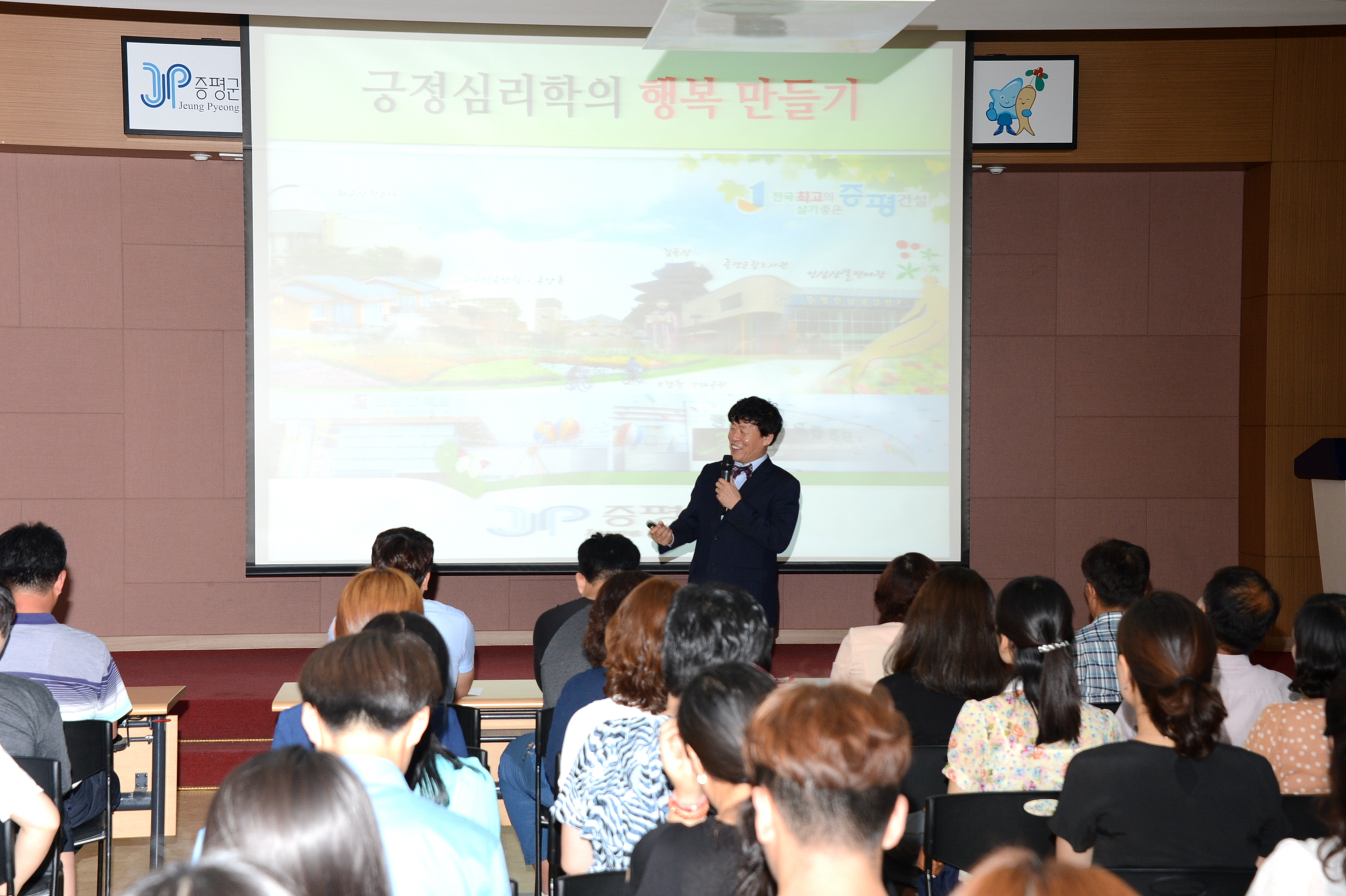 증평군은 7일 공직자 100여명을 대상으로 군청 대회의실에서 한국긍정심리연구소 소장 우문식 교수를 초빙해 긍정심리학의 행복으로 긍정조직 만들기 초청 강연을 실시했다.(보도자료실 참조)