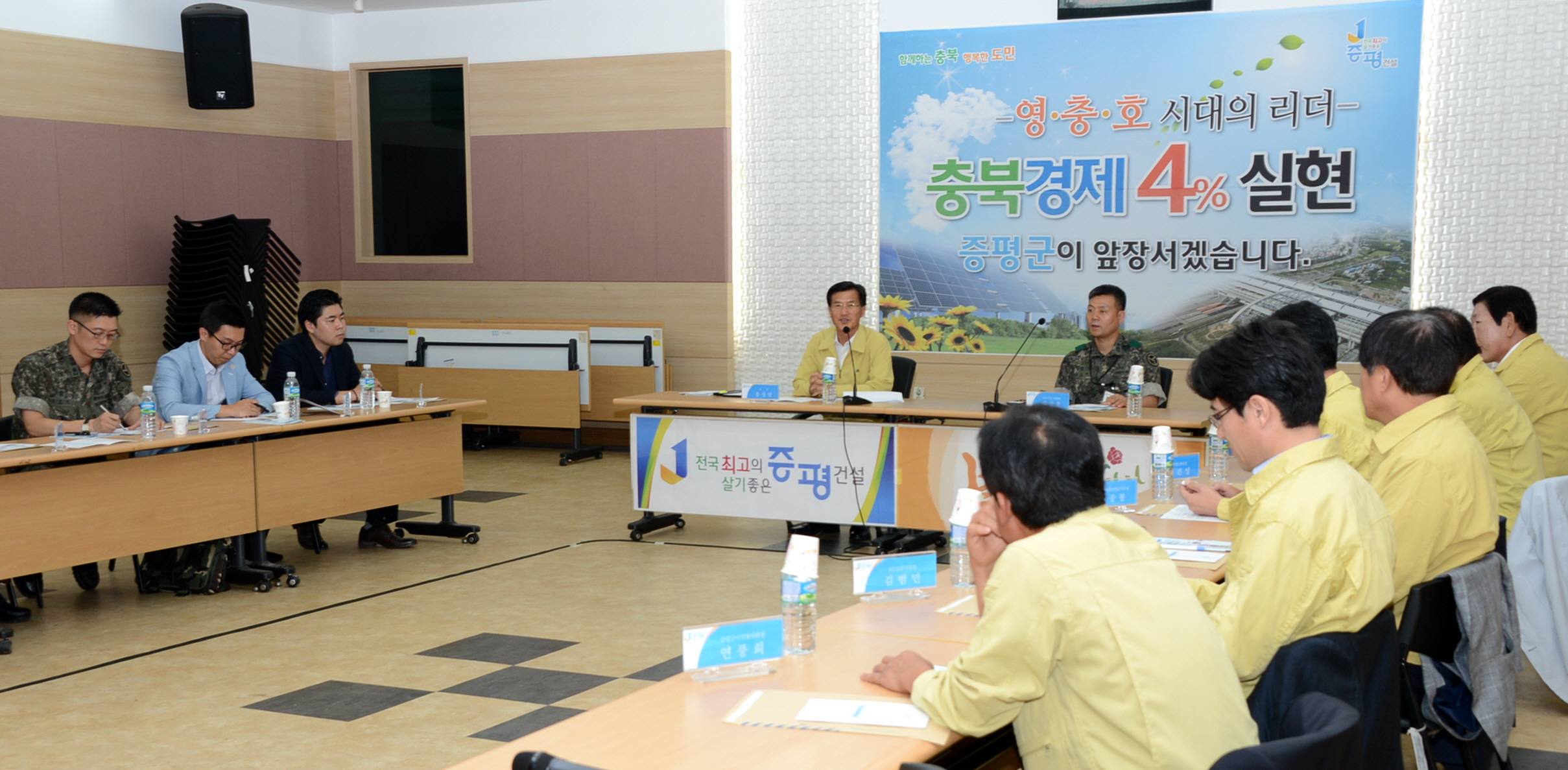 증평군은 13일 오전11시 군청 대회의실에서 홍성열 증평군수를 비롯한 통합방위협의회 의원, 민․관․군․경 관계자 등 30여명이 참석한 가운데 2015 을지연습을 대비한 3분기 통합방위협의회를 개최했다.(보도자료실 참조)