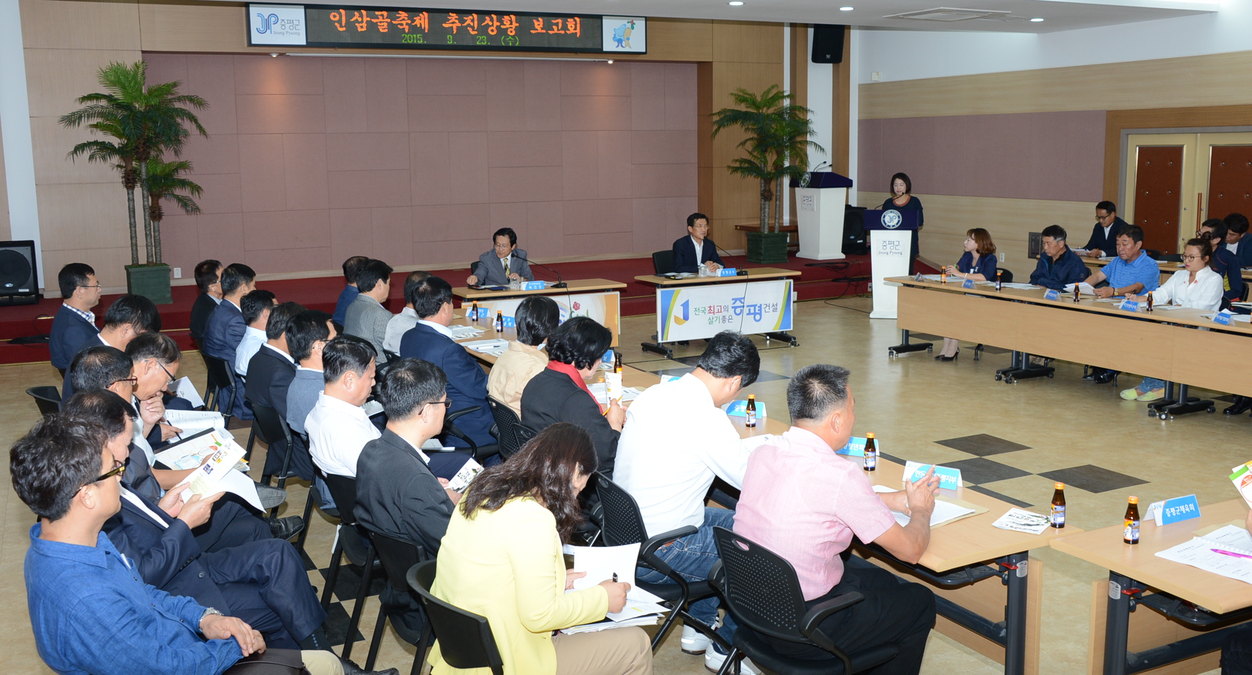 증평군은 23일 오후 1시30분 군청 대회의실에서 홍성열 증평군수, 최건성 문화원장을 비롯한 관련 기관·단체장과 관계 공무원 등 50여명이 참석한 가운데‘증평 인삼골축제’의 차질 없는 준비를 위한 축제 추진상황 보고회를 개최했다.(보도자료실 참조))