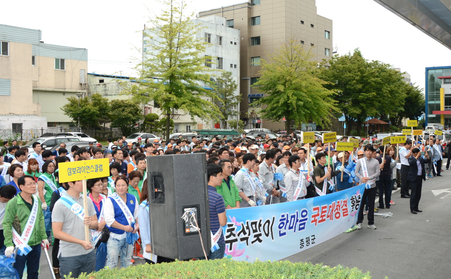 증평군은 다가오는 추석을 맞이해 고향을 찾는 방문객들에게 쾌적한 환경을 제공키 위해 23일 국토대청결 활동을 실시했다.(보도자료실 참조)