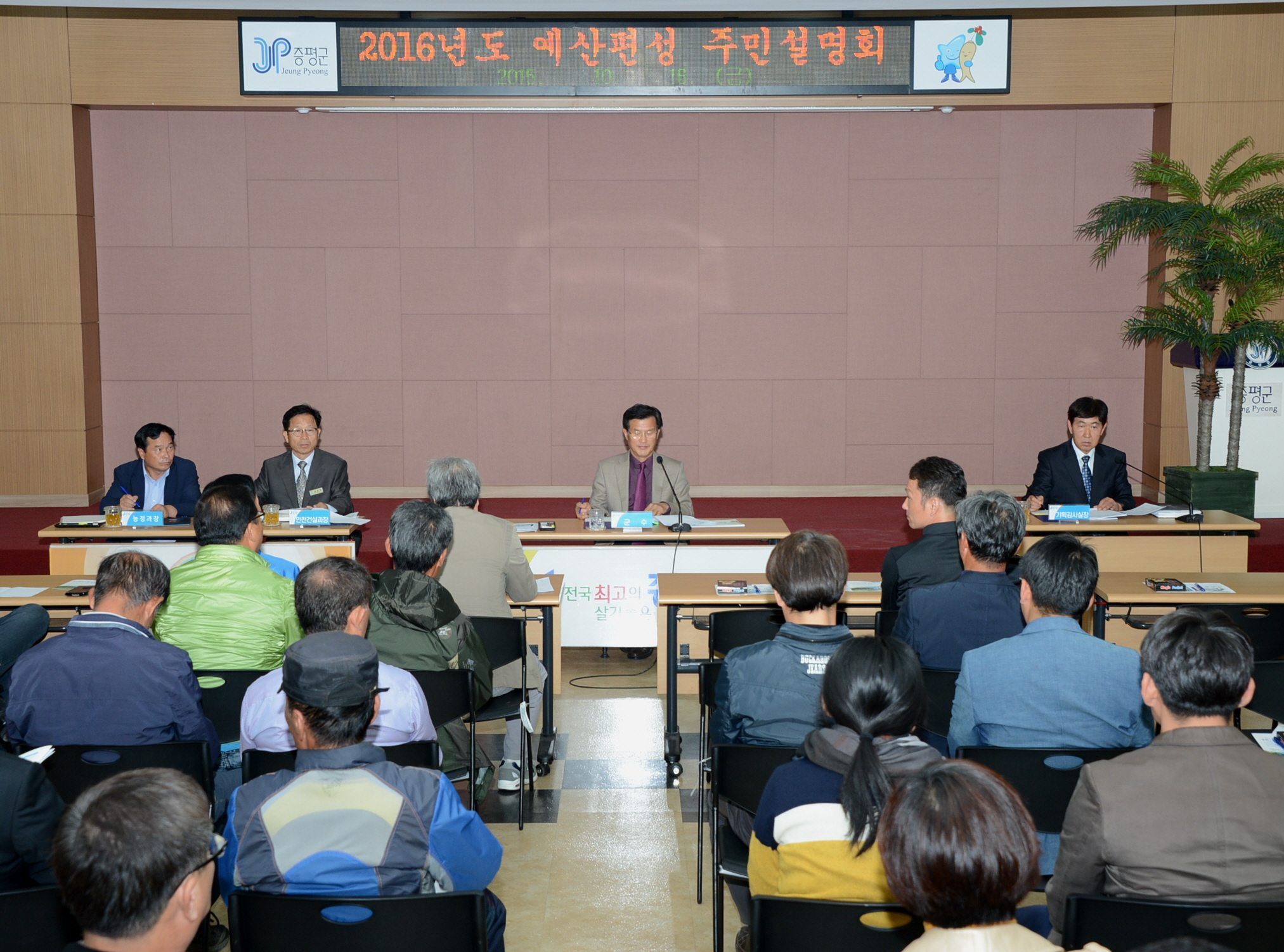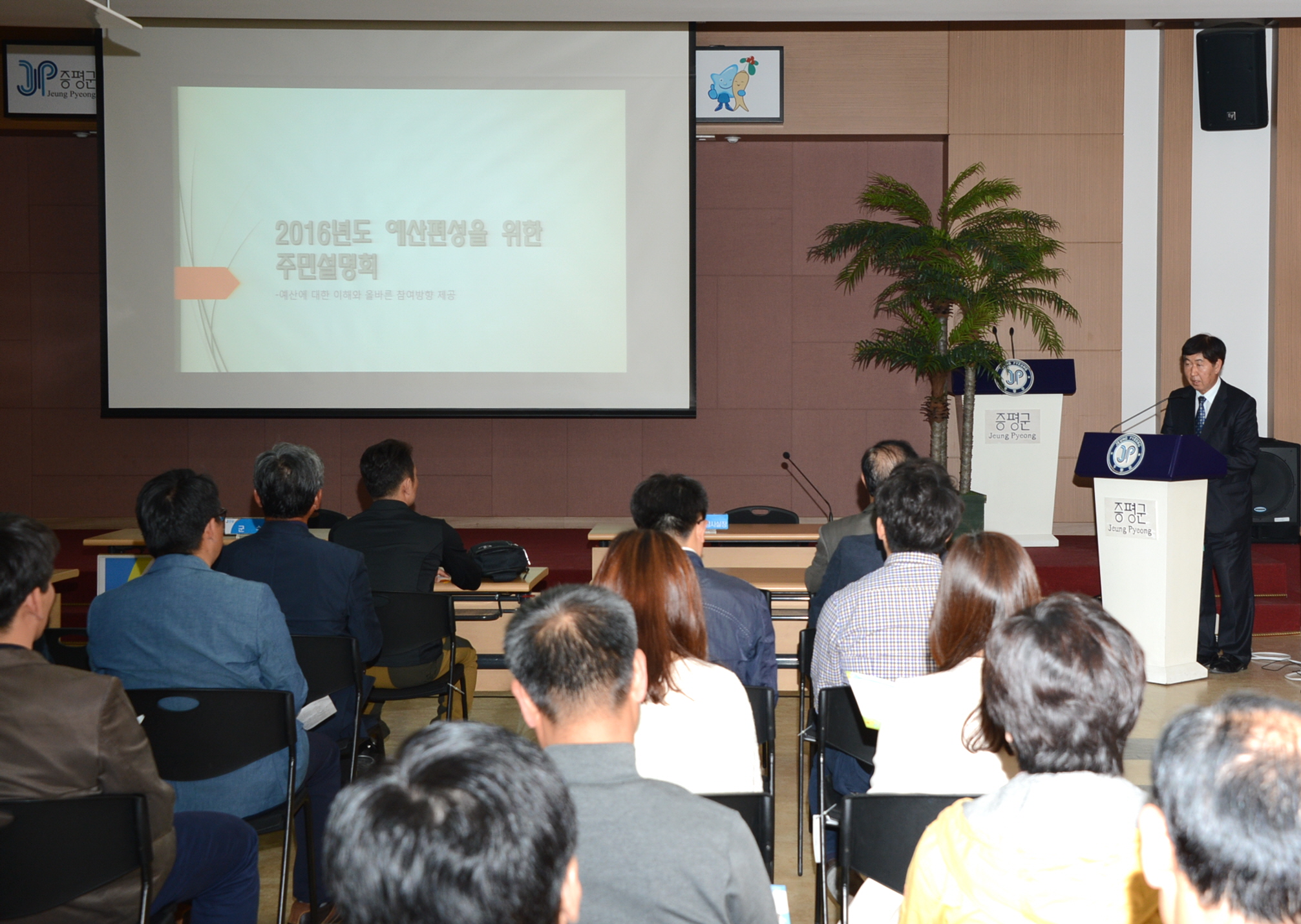 증평군은 16일 오후 3시 군청 대회의실에서 지역주민 100여명이 참석한 가운데 2016년도 예산 편성을 위한 주민설명회를 가졌다.(보돚료실 참조)