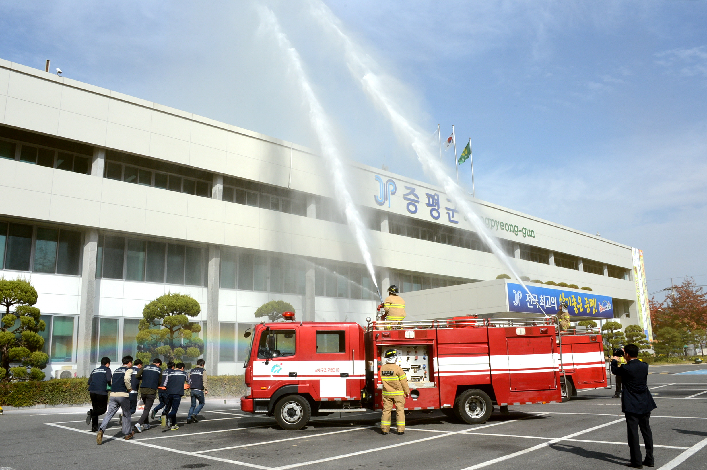 증평군은 26일 오전 11시 동절기 화재를 대비하여 증평군청 자위소방대와 증평소방서 합동으로 소방훈련을 가졌다.(보도자료실 참조)