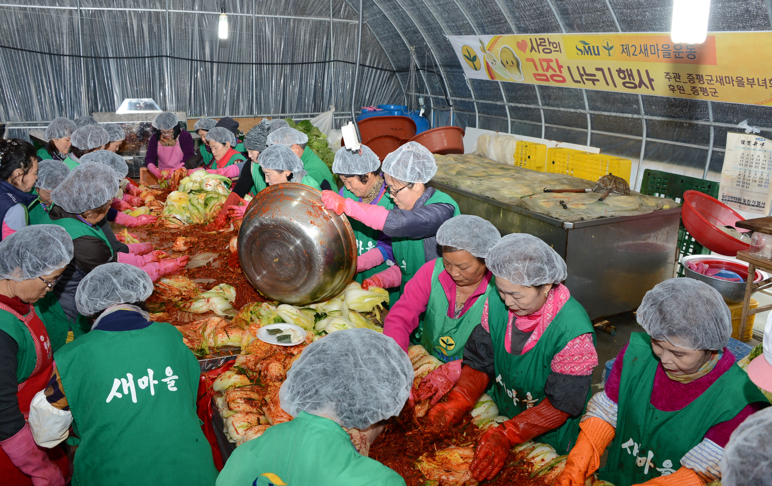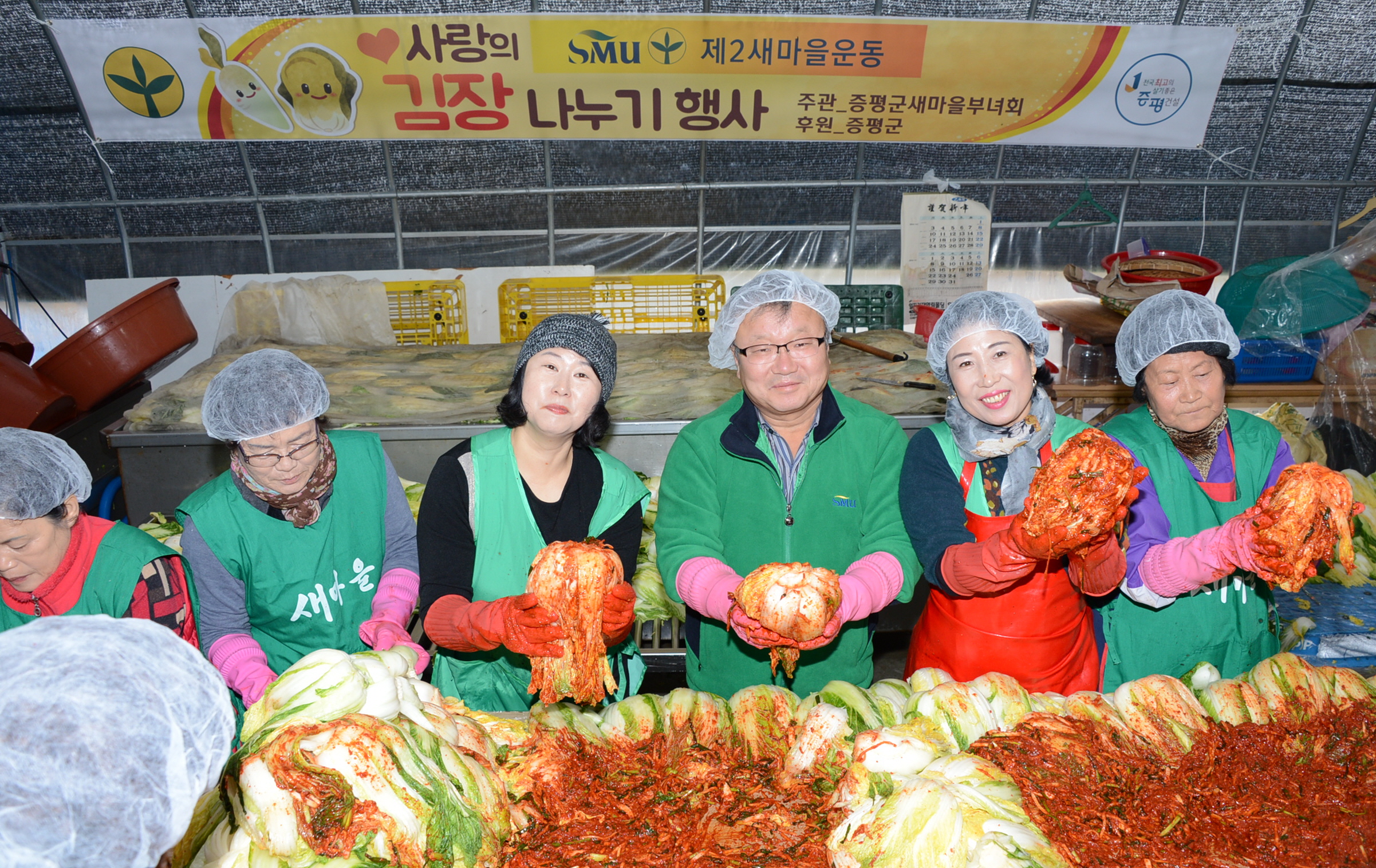 증평군새마을부녀회(회장 정현숙)는 18일부터 19일까지 양일간 부녀회원 60여명이 참가한 가운에 사랑의 김장나누기 행사를 증평읍 남하리 최현옥씨 절임배추시설 하우스에서 가졌다.(보도자료실 참조)