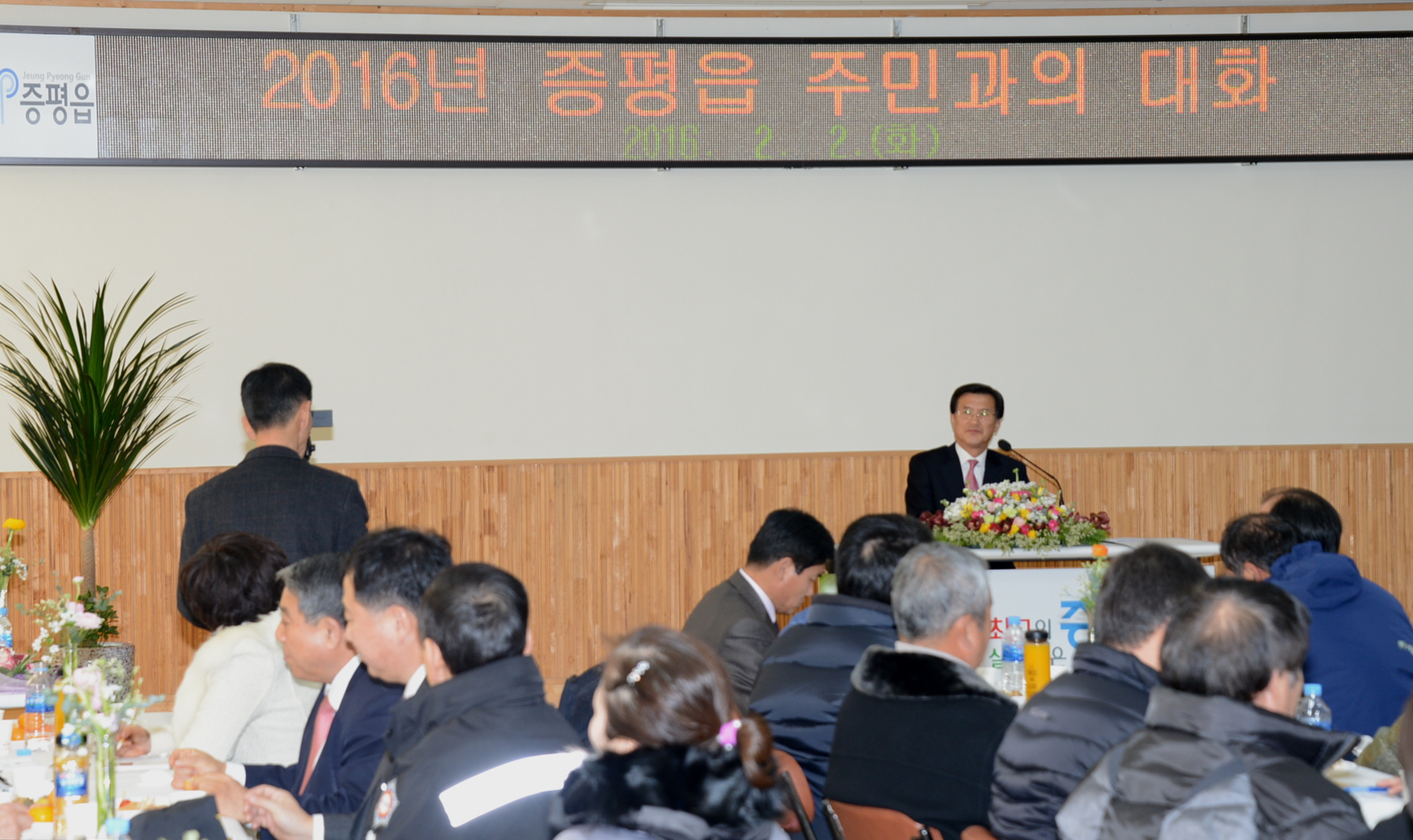 홍성열 증평군수는 2일 증평읍을 방문해 2016년도 주요업무 추진방향과 현안사업에 대해 설명하고 주민과의 대화를 가졌다.(보도자료실 참조)
