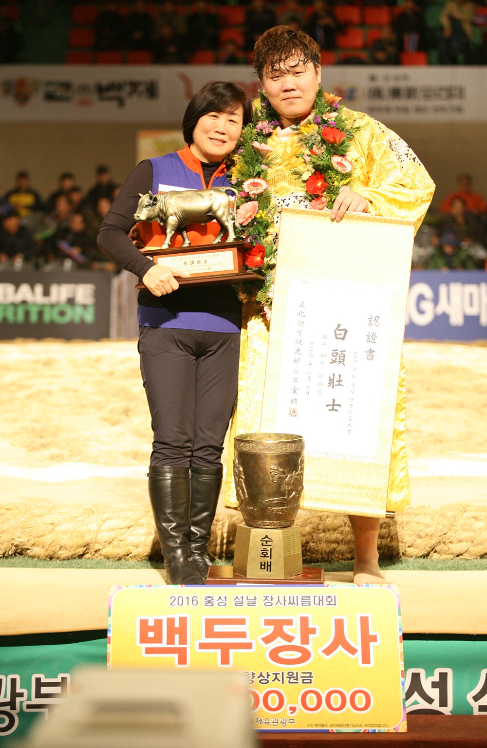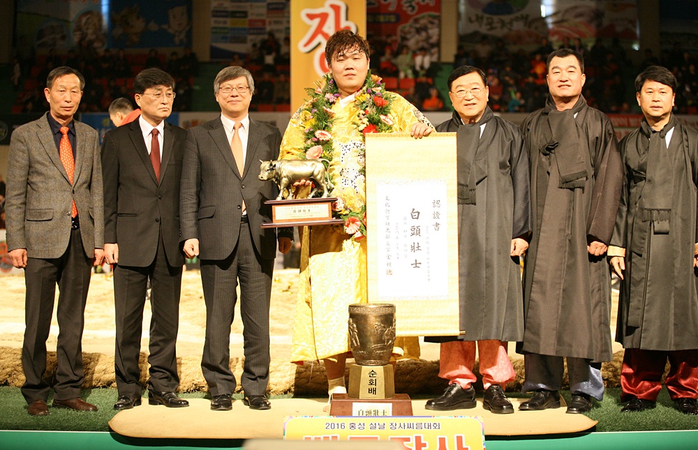 김진은 지난 9일 충남 홍성군 홍주문화체육관에서 열린 ‘2016 홍성 설날장사씨름대회’ 백두급(150㎏이하) 결정전 경기에서 울산 동구청 소속 정경진 선수를 3대 0으로 누르고 정상에 올랐다. 김진은 증평군청 인삼 씨름단에 입단한 이후 2014년 보은대회와 단오대회를 제패하고 1년 8개월여 만에 세 번째 타이틀을 거머쥐었다.