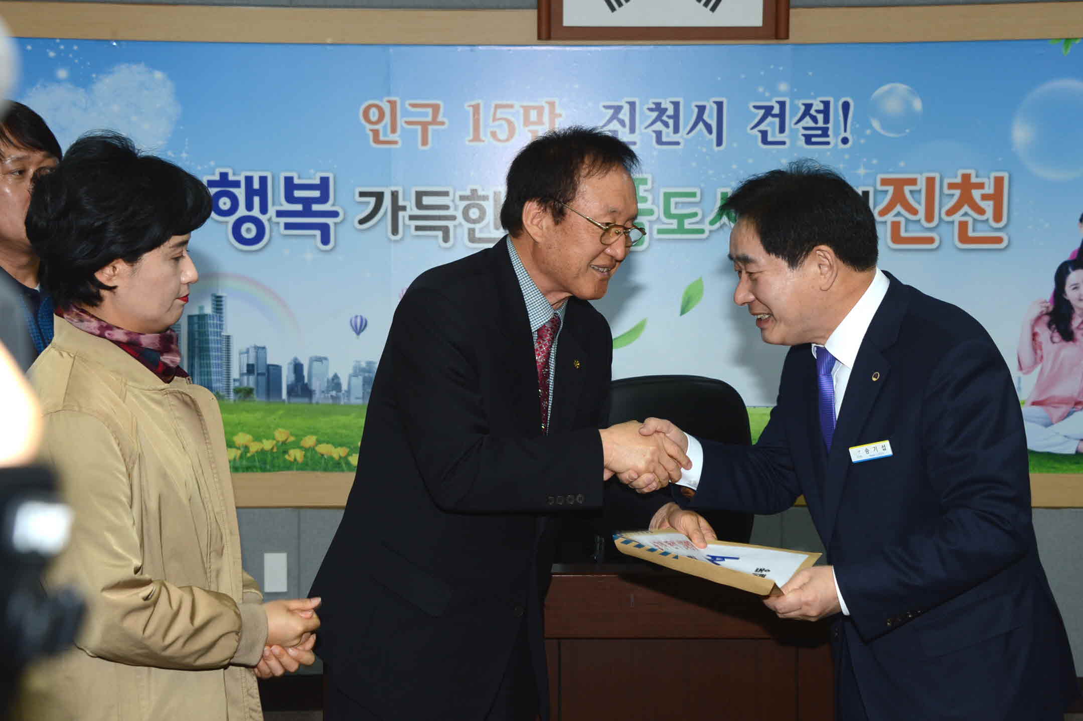진천군 초평면 용기리 대규모 돈사 건립 반대 대책위(위원장 김장응)는 13일 증평군민 1만 2천여명이 서명한 돈사건립 반대 진정서를 송기섭 진천군수에게 전달했다.(보도자료실 참조)