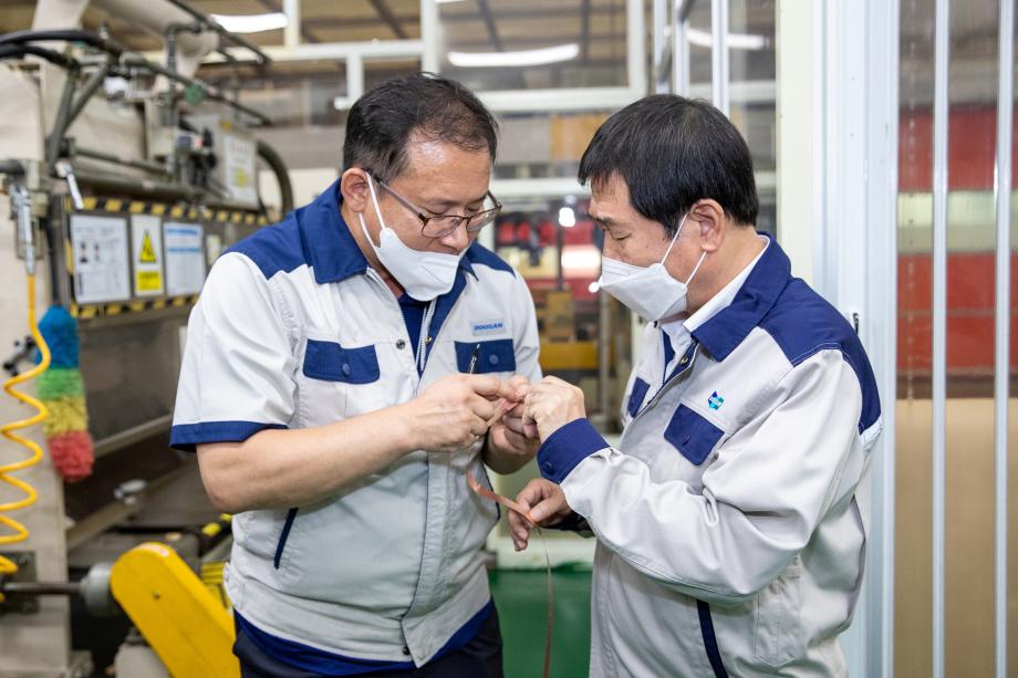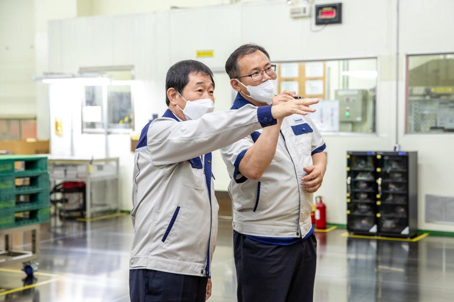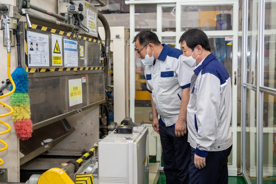 이재영 증평군수는 지난 6일 증평읍 용강리 소재 증평농공단지 내 두산전자㈜를 방문해 현장 관계자를 격려하고 기업 애로사항을 청취한 후 제조현장도 둘러봤다.