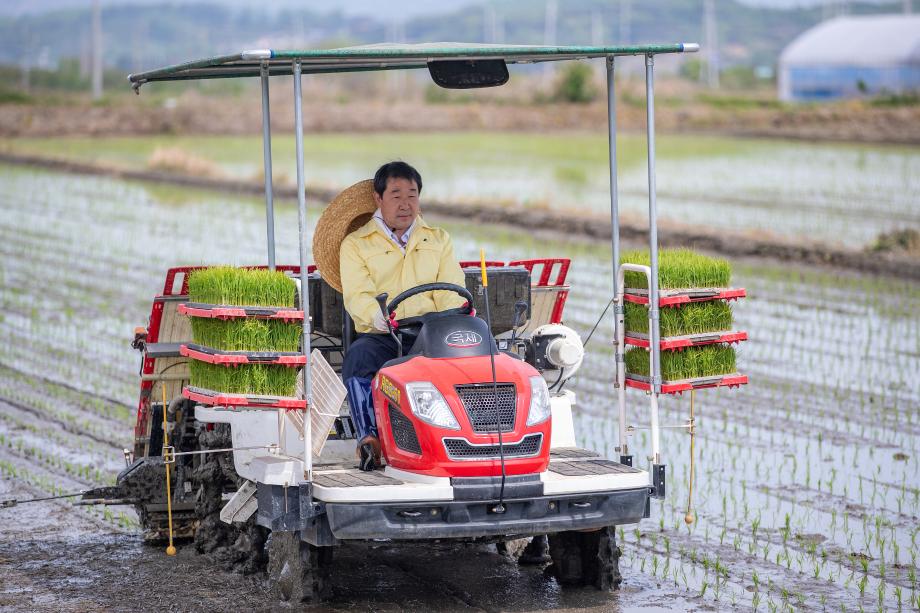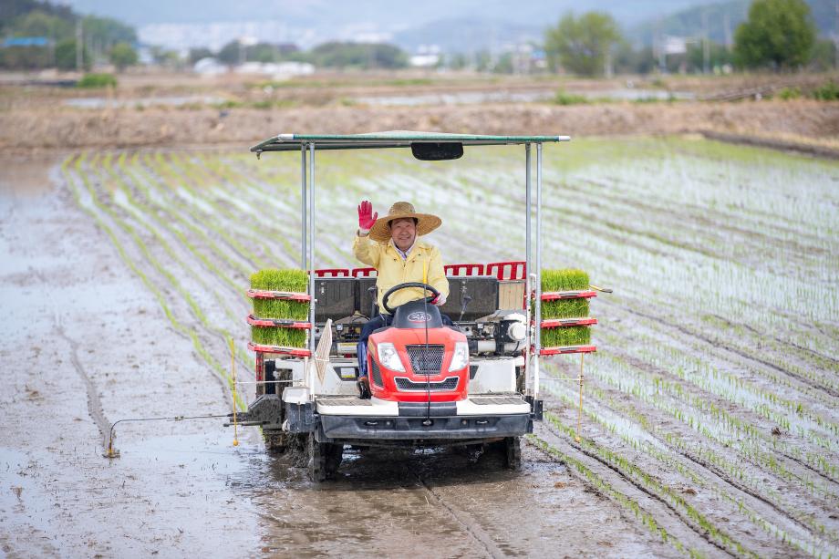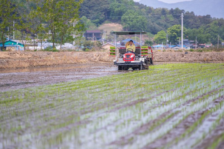 증평군은 5월 1일 증평읍 남차리 김태복(73세) 농가 논 0.6ha에서 올해 첫 모내기를 실시했다.