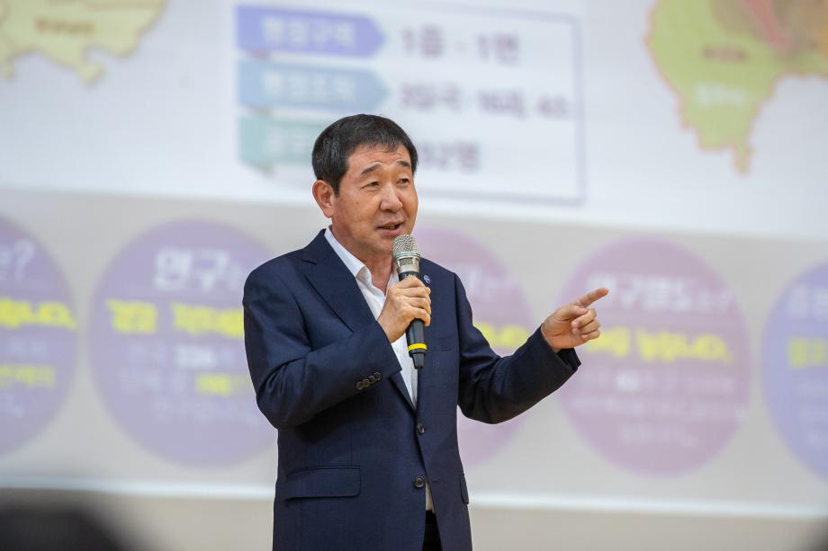 이재영 증평군수가 18일 증평중학교에서 ‘어제가 오늘을 만들고, 오늘이 내일을 만든다’라는 주제로 특강을 펼쳤다.