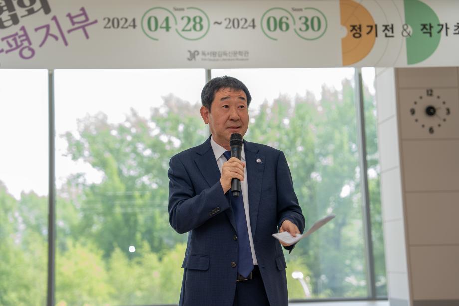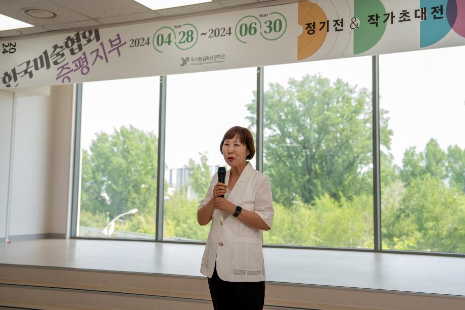 (사)한국미술협회 증평군지부(지부장 이민숙)는 지난 4일 독서왕 김득신 문학관에서 ‘증평미술협회 정기전&작가 초대전’ 개막식을 개최했다.