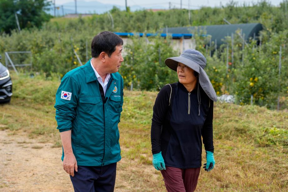 이재영 증평군수, 무더위 이겨낸 사과 재배 농가 격려