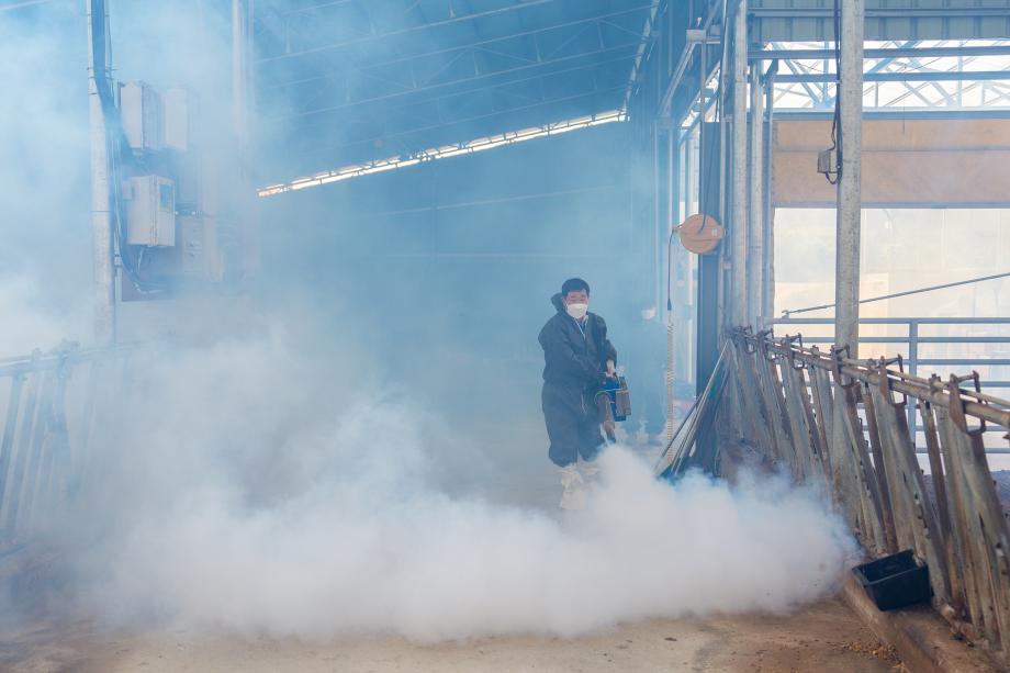 증평군은 럼피스킨 확산 방지를 위하여 일제 방제소독에 총력을 기울이고 있다.