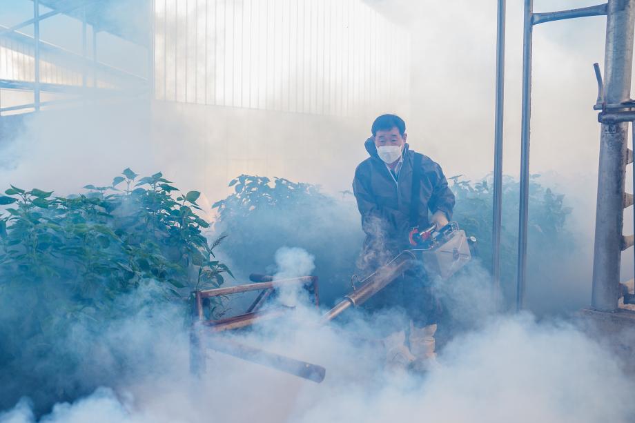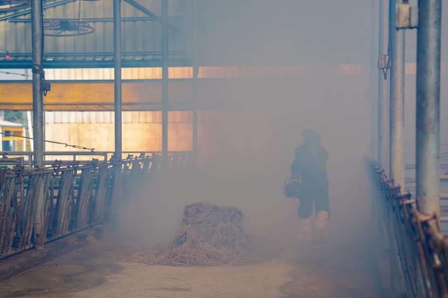 30일, 직접 현장 방제작업에 나선 이재영 증평군수는 지난 28일 충북 충주시에서 럼피스킨 확진 이후 방제 소독에 총력을 기울이고 있다.