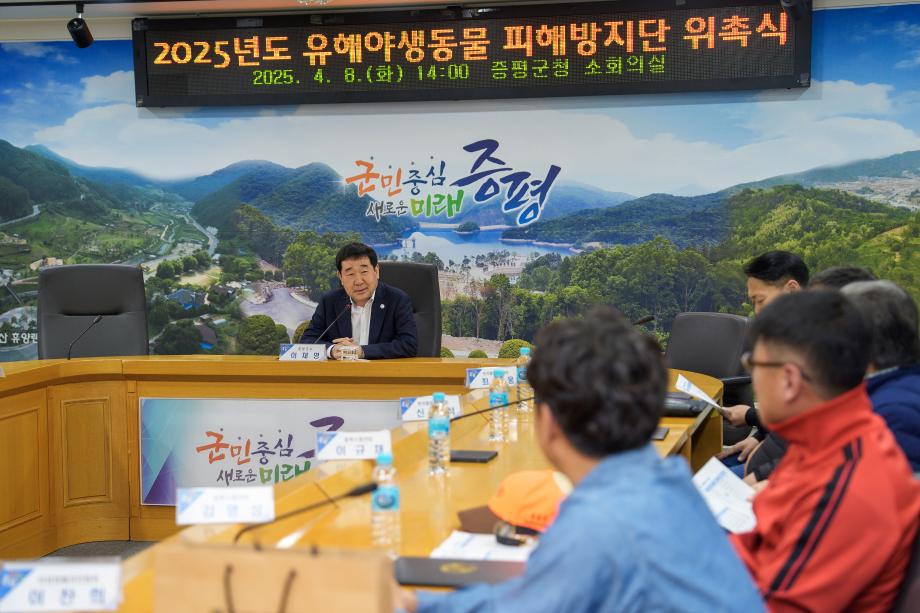 충북 증평군은 지난 8일 군청 소회의실에서 2025년도 증평군 유해야생동물 피해방지단 위촉식을 개최했다고 밝혔다.