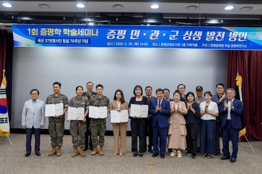 충북 증평군은 증평학연구소(소장 김덕중) 주관으로 육군 제37보병사단 창설 70주년 기념 학술세미나를 증평군립도서관에서 26일 개최했다.