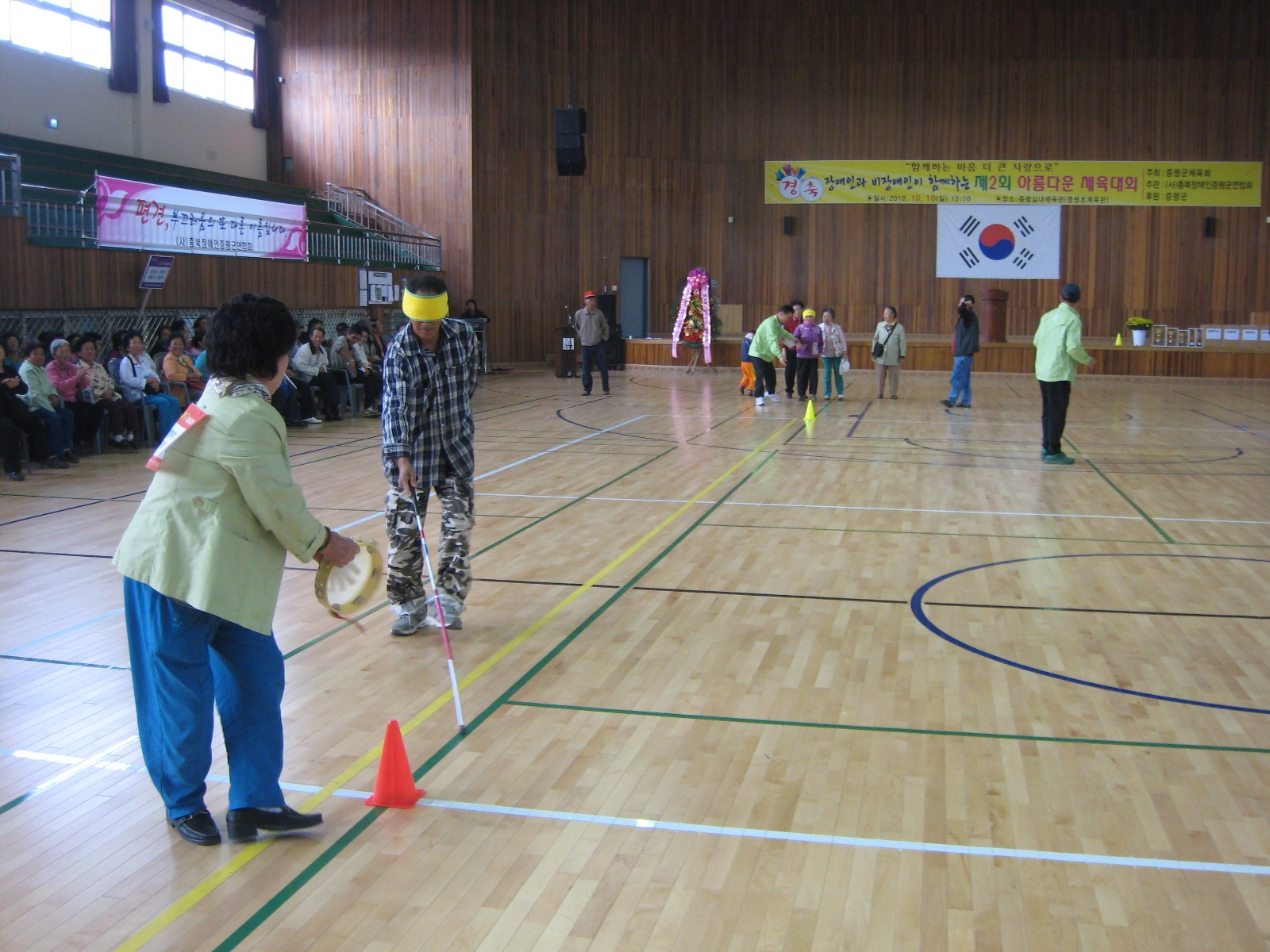 스포츠를 통해 장애인과 비장애인이 땀 흘릴 수 있는 기회를 제공하기 위한 “제2회 아름다운 체육대회”가 10일 오전 10시 증평체육관에서 홍성열 증평군수를 비롯한 지역 장애인단체 회원 및 각급 사회봉사단체 회원 등 200여명이 함께한 가운데 열렸다. [보도자료실 참조]