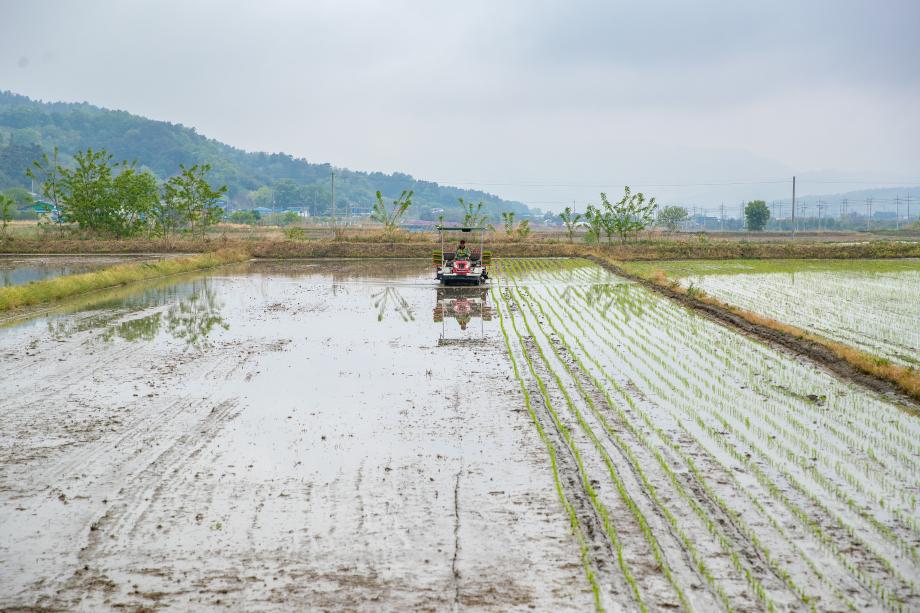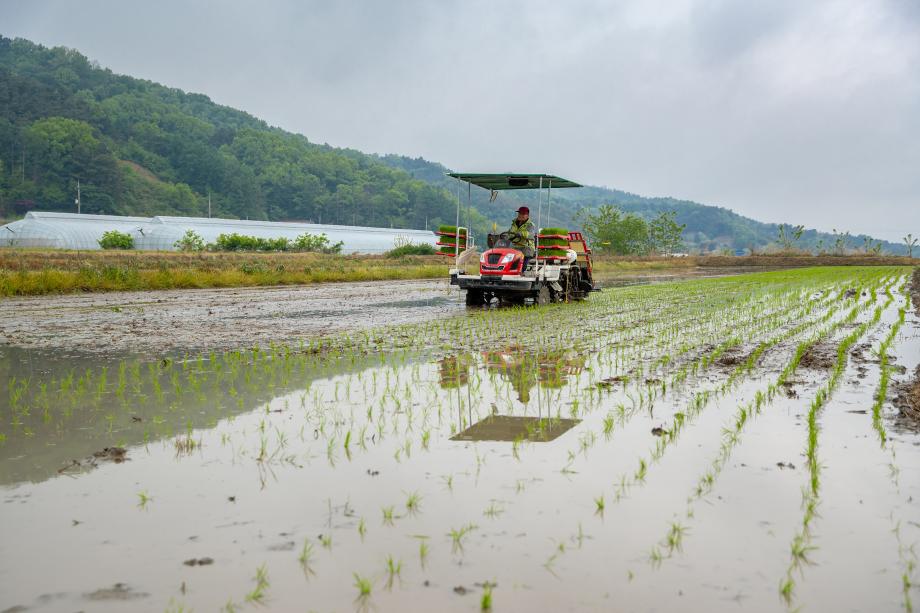 증평군은 30일 증평읍 남차리 김태복 농가 논 0.6ha에서 올해 첫 모내기를 실시하였다.