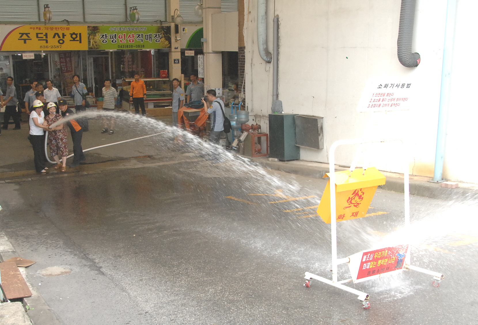 장뜰시장 비상소화전활용 화재진압 경연대회 열려