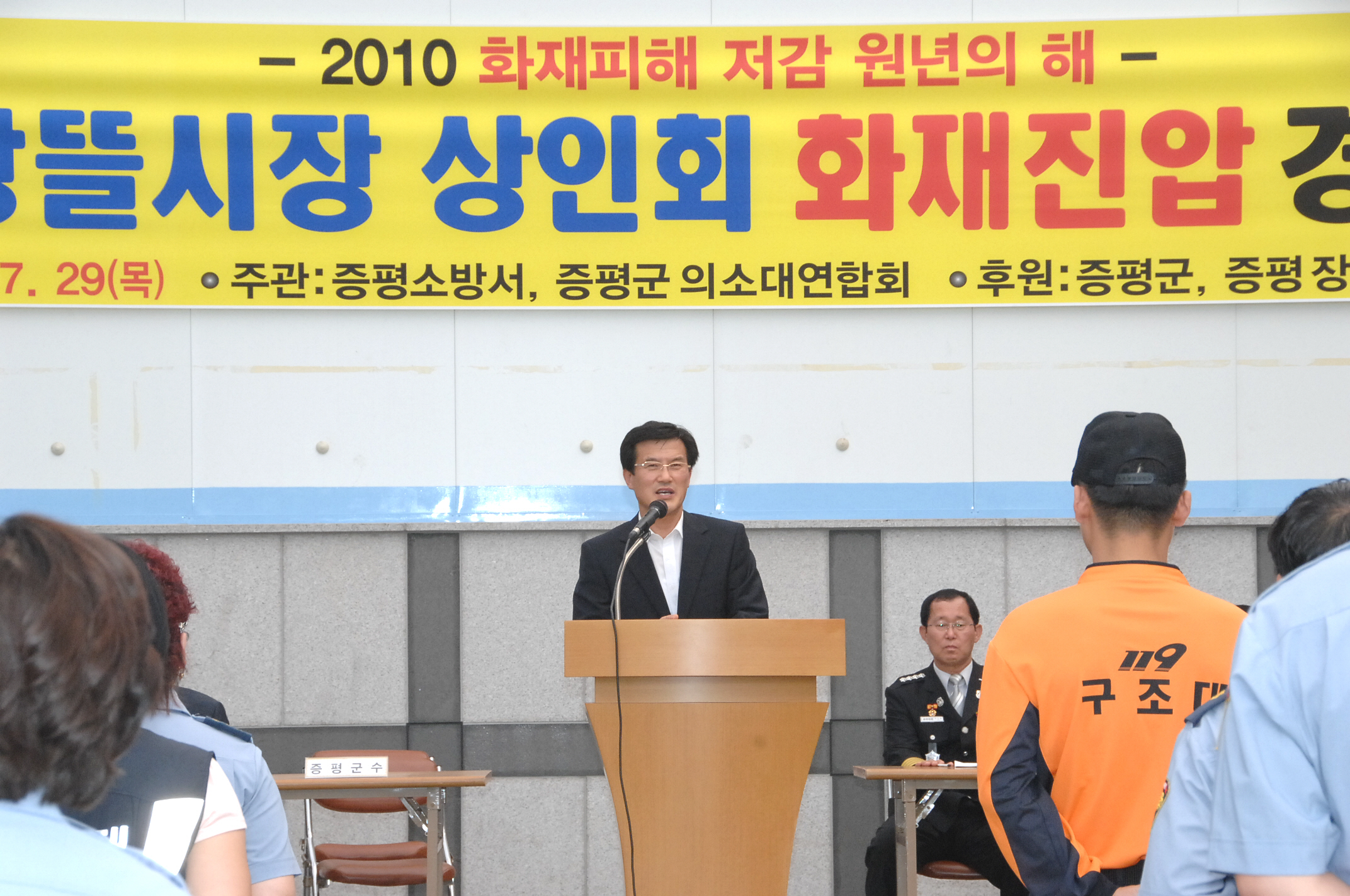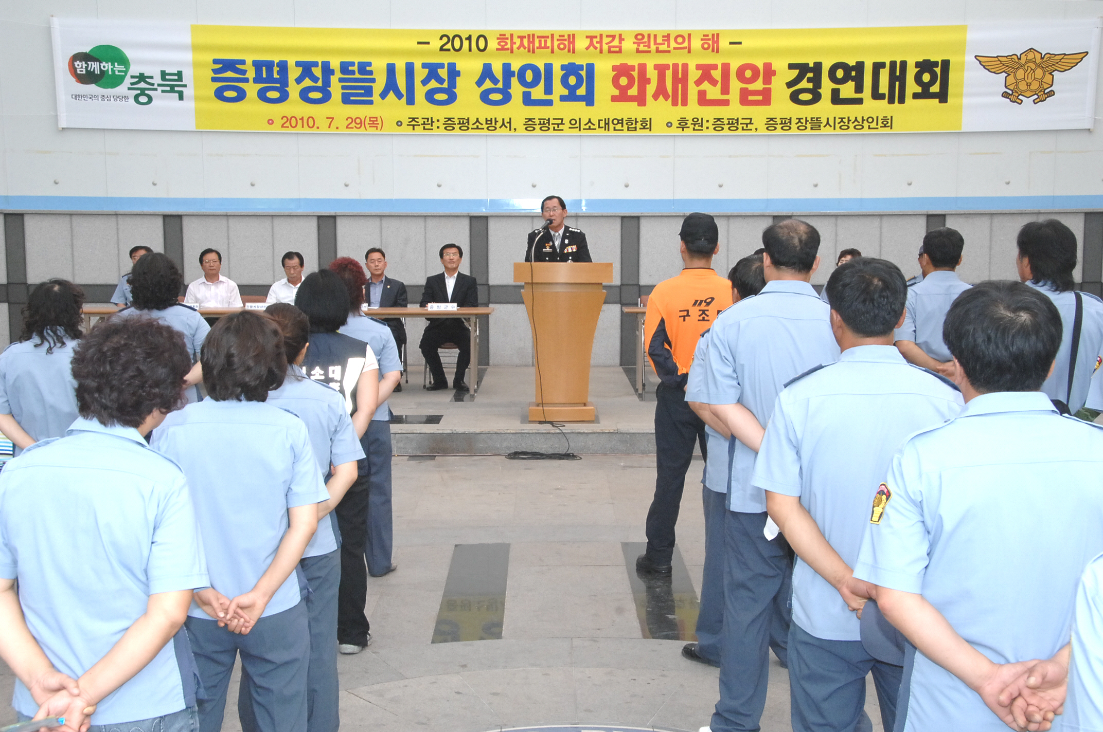 비상소화전을 활용한 화재진압 경연대회가 29일 오후3시 장뜰시장 다목적광장에서 홍성열군수, 유인인소방서장, 김재룡군의장, 김봉회도의원, 이종철농협군지부장, 채수일상인연합회장을 비롯한 기관단체장과 소방공무원, 의용소방대원, 장뜰시장 상인회 등 200여명이 참석한 가운데 열렸다.[보도자료실 참조]