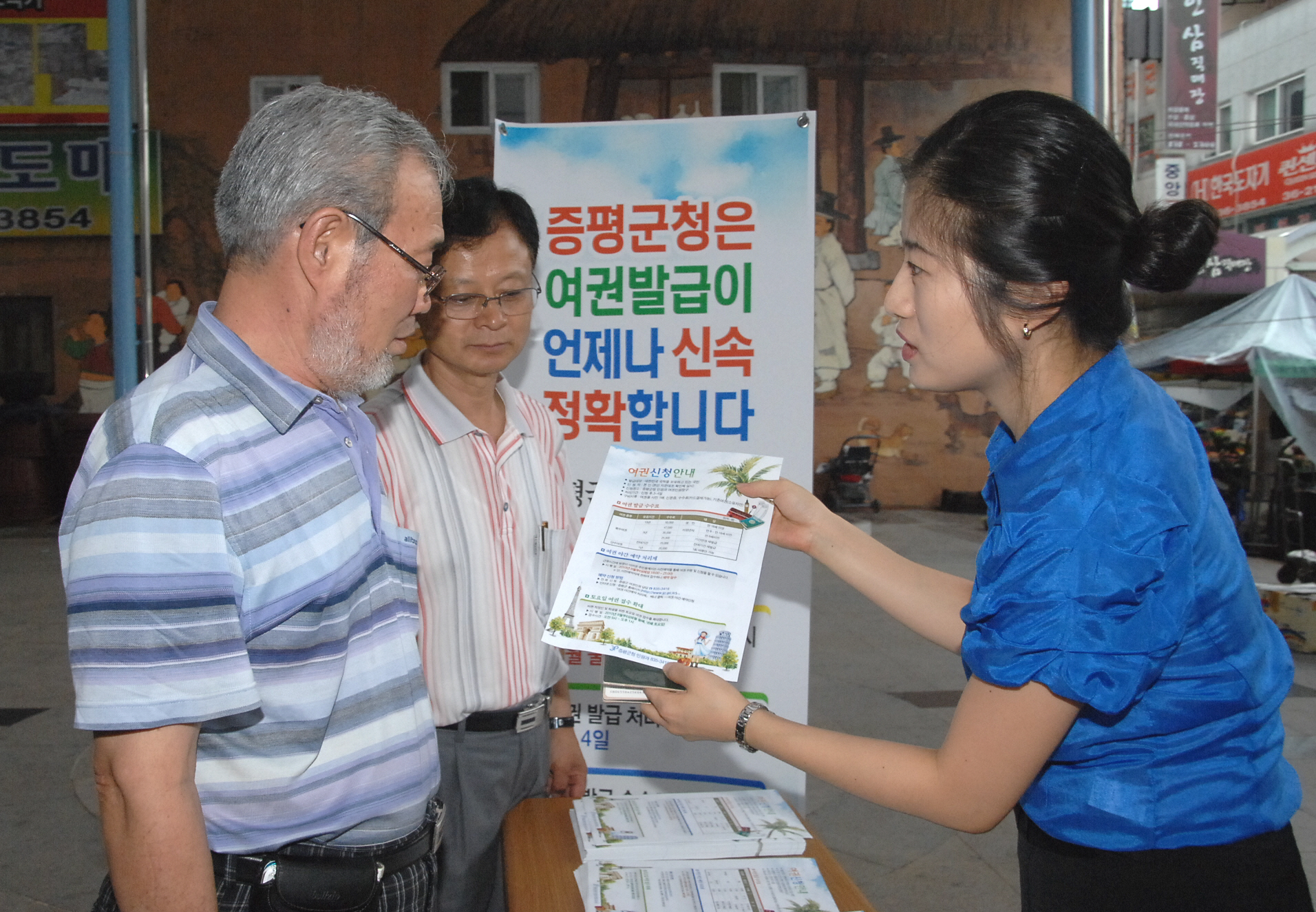증평군은 26일 오후 2시 증평읍 장뜰재래시장 다목적광장에서 ‘여권 야간 예약처리제 토요일 접수’ 가두 홍보 캠페인을 펼쳤다.[보도자료실 참조]