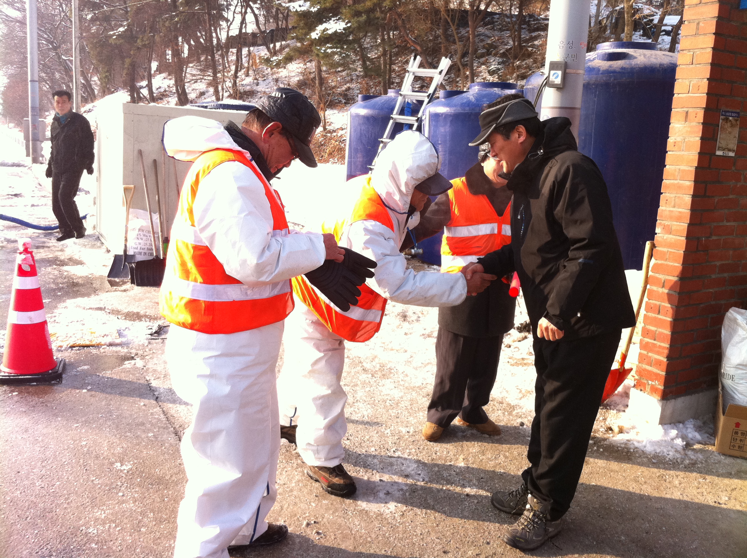 증평과 경계를 맞대고 있는 괴산과 진천지역에서 구제역이 발생돼 증평군이 비상방역체제에 돌입한 가운데 홍성열 증평군수는 5일과 6일 구제역 통제초소를 방문해 추운 날씨에도 불구하고 차단방역활동을 벌이고 있는 초소 근무자들을 격려했다. [보도자료실 참조]