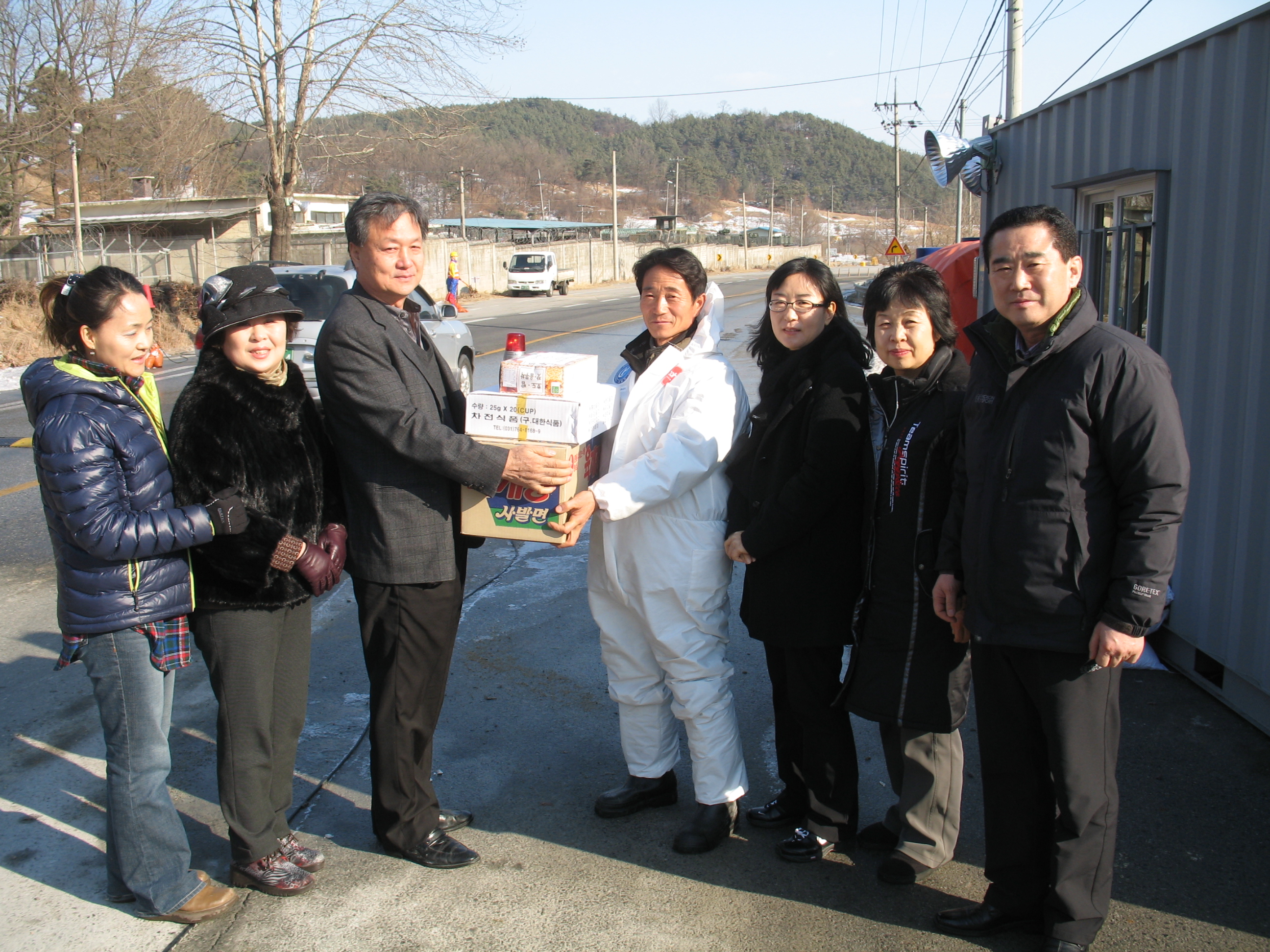 법무부범죄예방증평군협의회(회장 박성현)은 25일 지역 내 구제역 방역초소를 위문방문하고 근무자들에게 30만원 상당의 꿀차와 온음료를 전달했다.[증평포커스 참조]