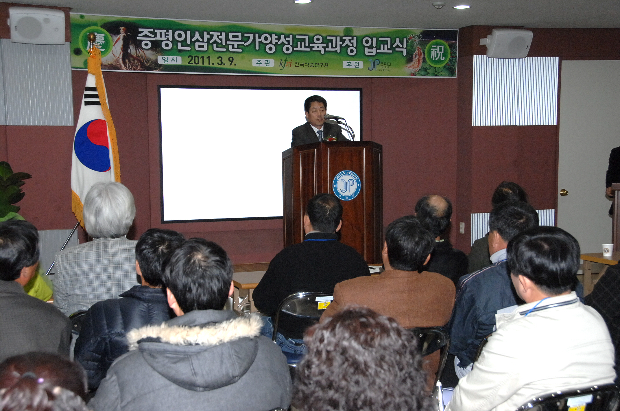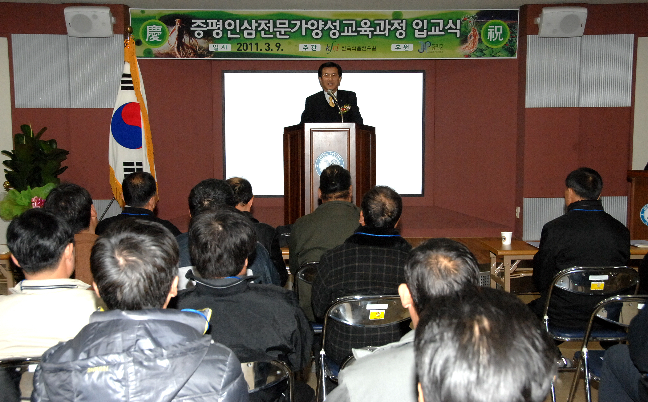 증평군은 9일 오후 2시 증평인삼관광휴게소에서 교육생 46명을 비롯한 과정운영진, 군 관계자 등이 참여한 가운데 ‘증평인삼전문가과정교육’ 입교식을 개최했다.[보도자료실 참조]
