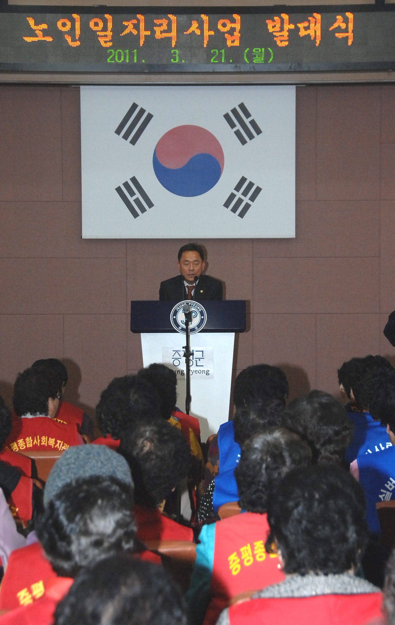 증평종합사회복지관과 삼보사회복지관이 공동 주최하는 노인일자리사업 발대식이 21일 오전 10시 증평군청 대회의실에서는 홍성열 군수, 김재룡 군의장, 연종석 부의장, 양천공 증평종합사회복지관장, 최성진 삼보사회복지관장를 비롯한 복지관 관계자와 지역 내 65세 이상 일자리 참여 어르신 139명이 참석한 가운데 열렸다. [보도자료실 참조]