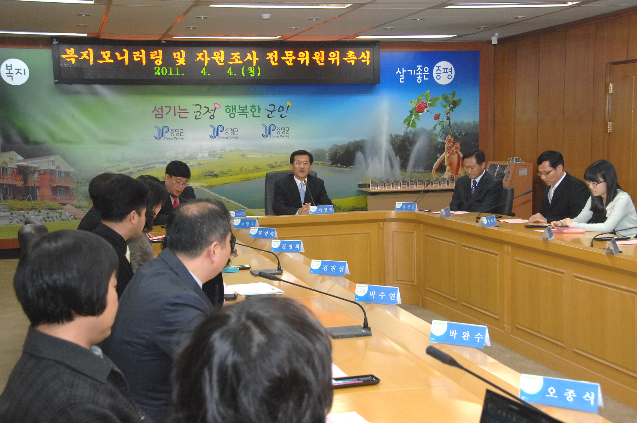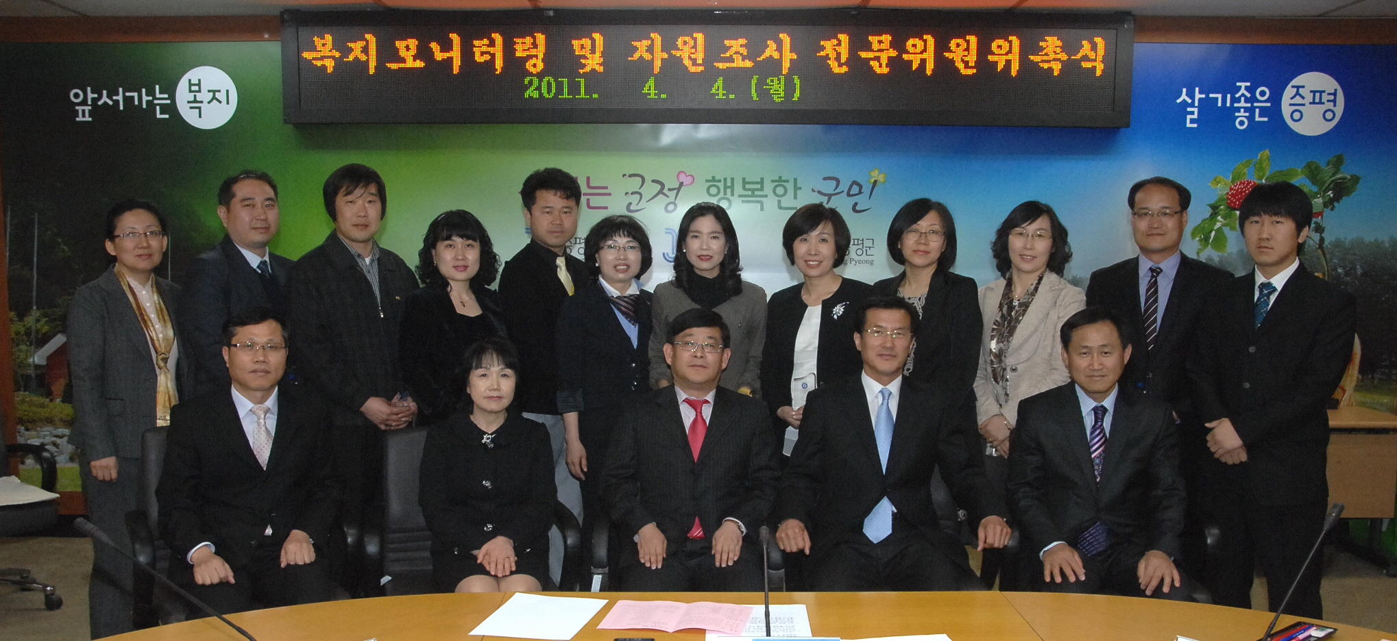 증평군 복지모니터링 및 자원조사 전문위원 위촉식이 4일 오후 2시 군청 소회의실에서 열린 가운데 복지모니터링 위원 10명, 자원조사 위원 3명 등 총 13명의 전문위원을 위촉했다.[보도자료실 참조]