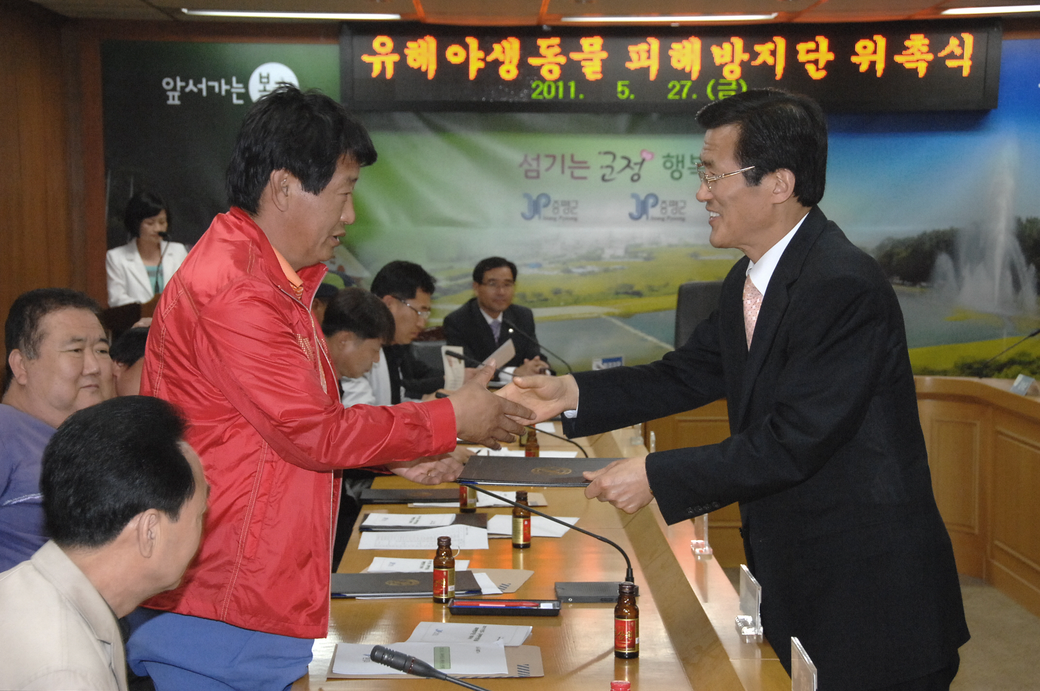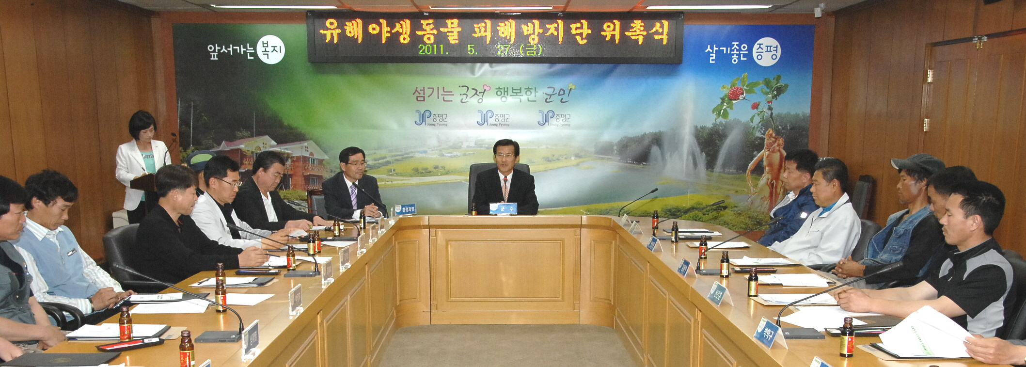 증평군은 27일 오후 3시 군청 소회의실에서 2011년도 유해야생동물 피해방지단 위촉식과 준수사항에 대한 교육을 실시했다.[보도자료실 참조]
