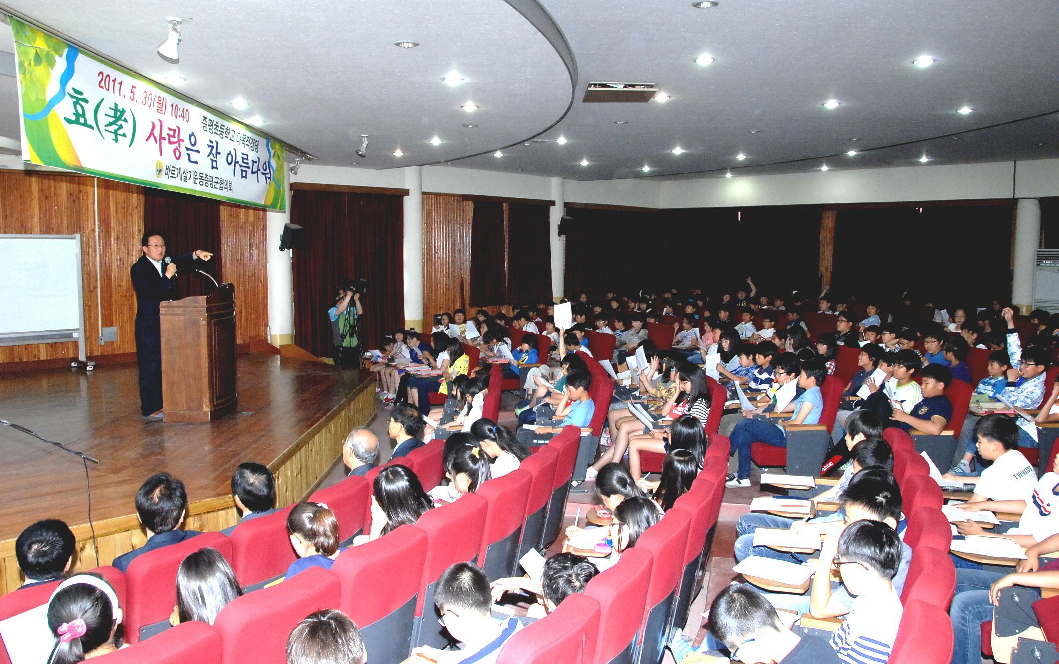 바르게살기운동증평군협의회(회장 변종림)는 30일 오전 10시40분 증평초등학교 다목적실에서 5학년 300명을 대상으로 ‘아름다운 어린이-효’라는 주제로 ‘효사랑 강연회’를 가졌다.[보도자료실 참조]