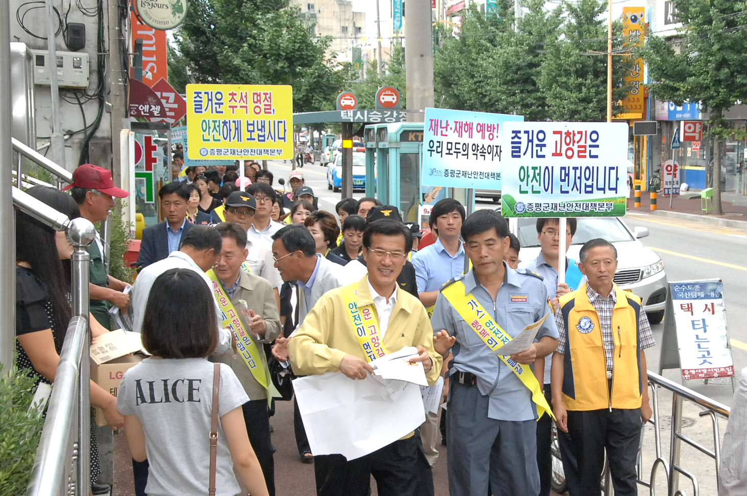 증평군은 5일 오전 10시부터 증평군청 광장 및 전통시장 등에서 지역 내 유관기관 및 재난네트워크 단체 등 150여명이 참가한 가운데 제186차 안전점검의 날 ‘추석절 안전사고 예방 캠페인’을 전개했다.[보도자료실 참조]