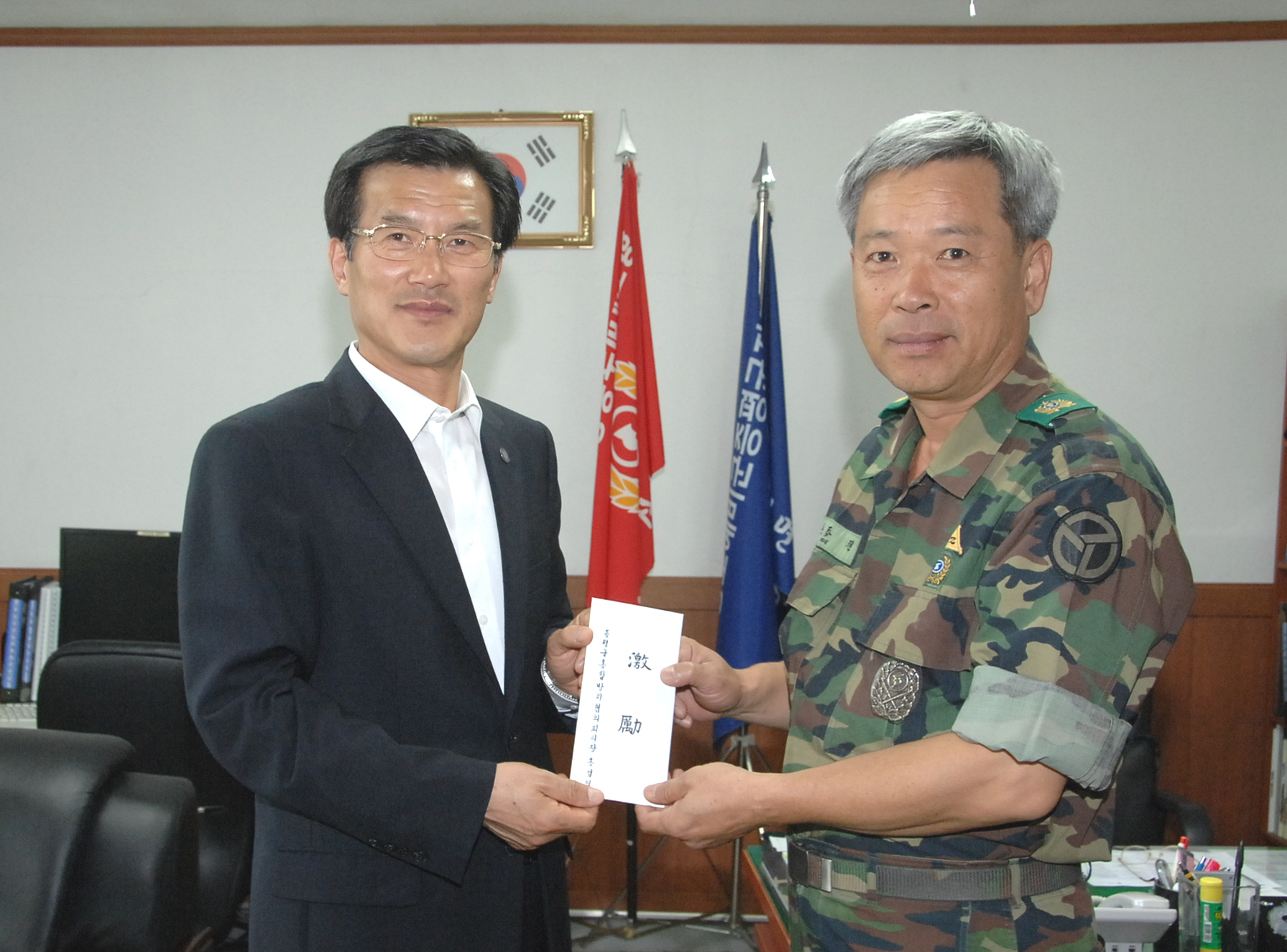 사진은 홍성열 증평군수가 증평읍 장동리에 거주하는 저소득층 노인부부세대와 증평군 지역대를 위문하는 모습