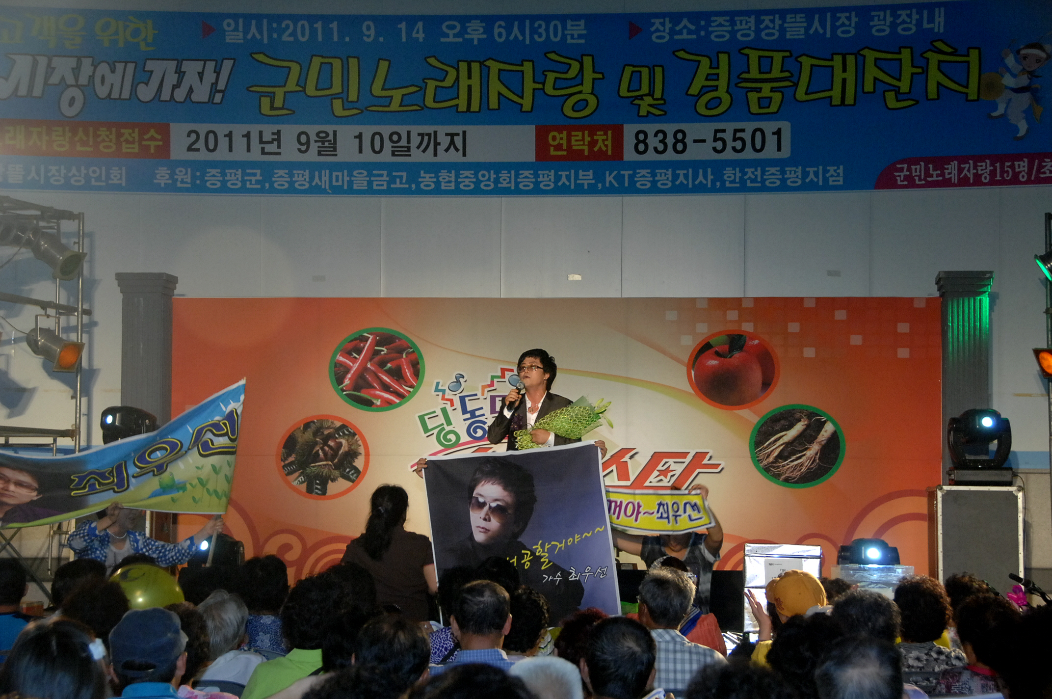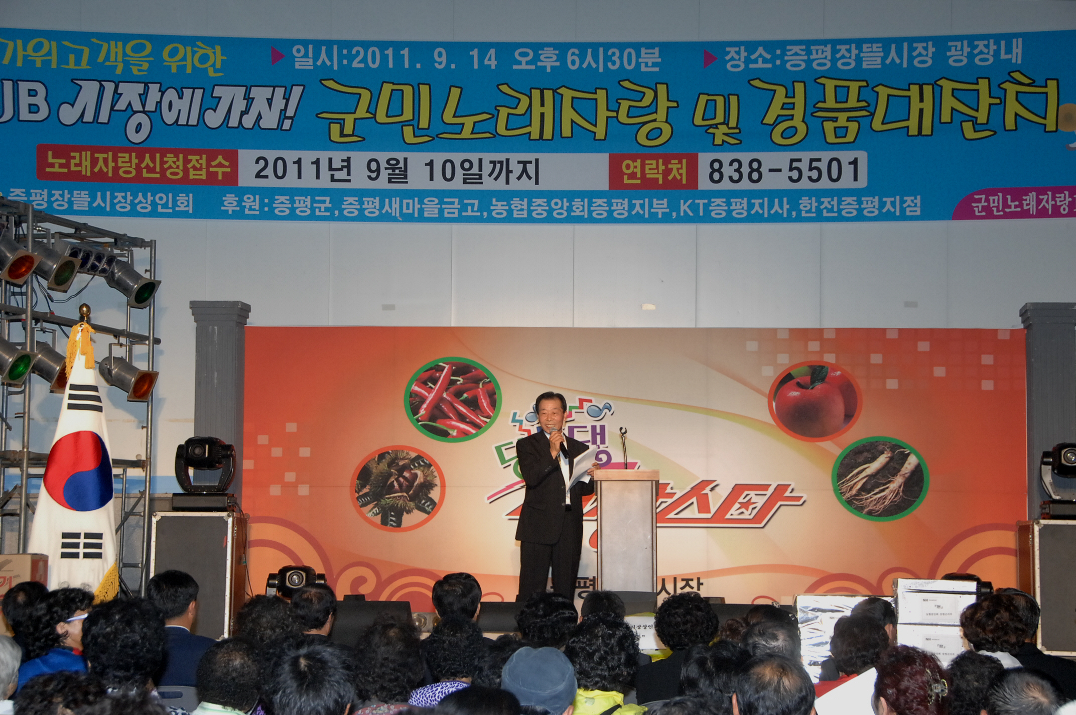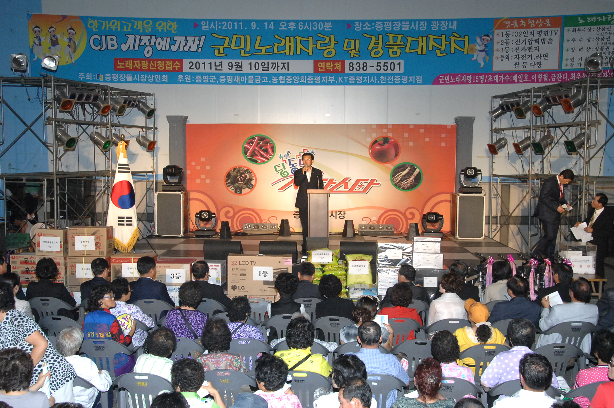 한가위 고객을 위한 ‘ CJB 시장에 가자 ’ 증평군민노래 자랑 및 경품대잔치가 14일 오후 6시 30분 증평장뜰시장 광장에서 장뜰시장 상인회(회장.채수일)가 주최하고, 증평군, 증평새마을금고, 농협증평군지부, KT증평지사, 한전 증평지사 후원으로 열렸는데, 이날 녹화 방송된 ‘ CJB 시장에 가자 ’는 오는 10월11일 오후 5시30분 방영된다.