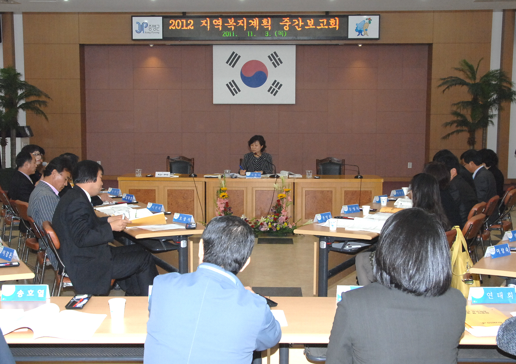 증평군은 3일 오전 11시 군청 대회의실에서 홍성열 증평군수, 지역사회복지협의체 위원을 비롯한 지역 각계의 복지관계자 등 40여명이 참여한 가운데 지역사회복지시행계획 중간보고회 및 복지분야 군민참여 토론회를 개최했다.[보도자료실 참조]